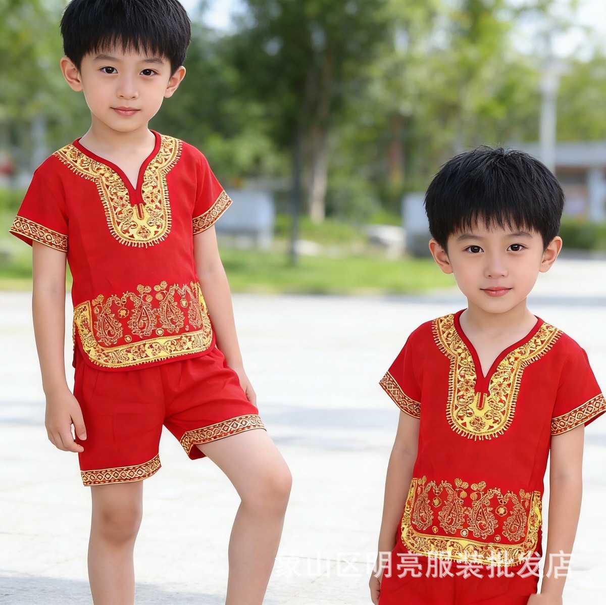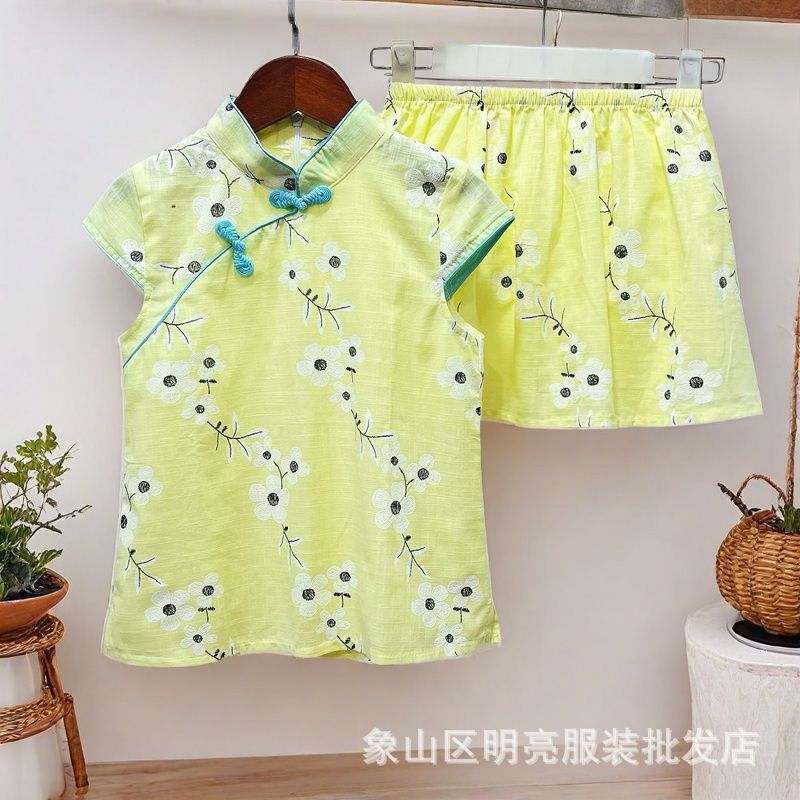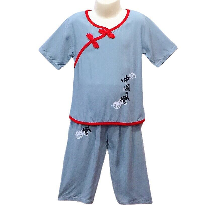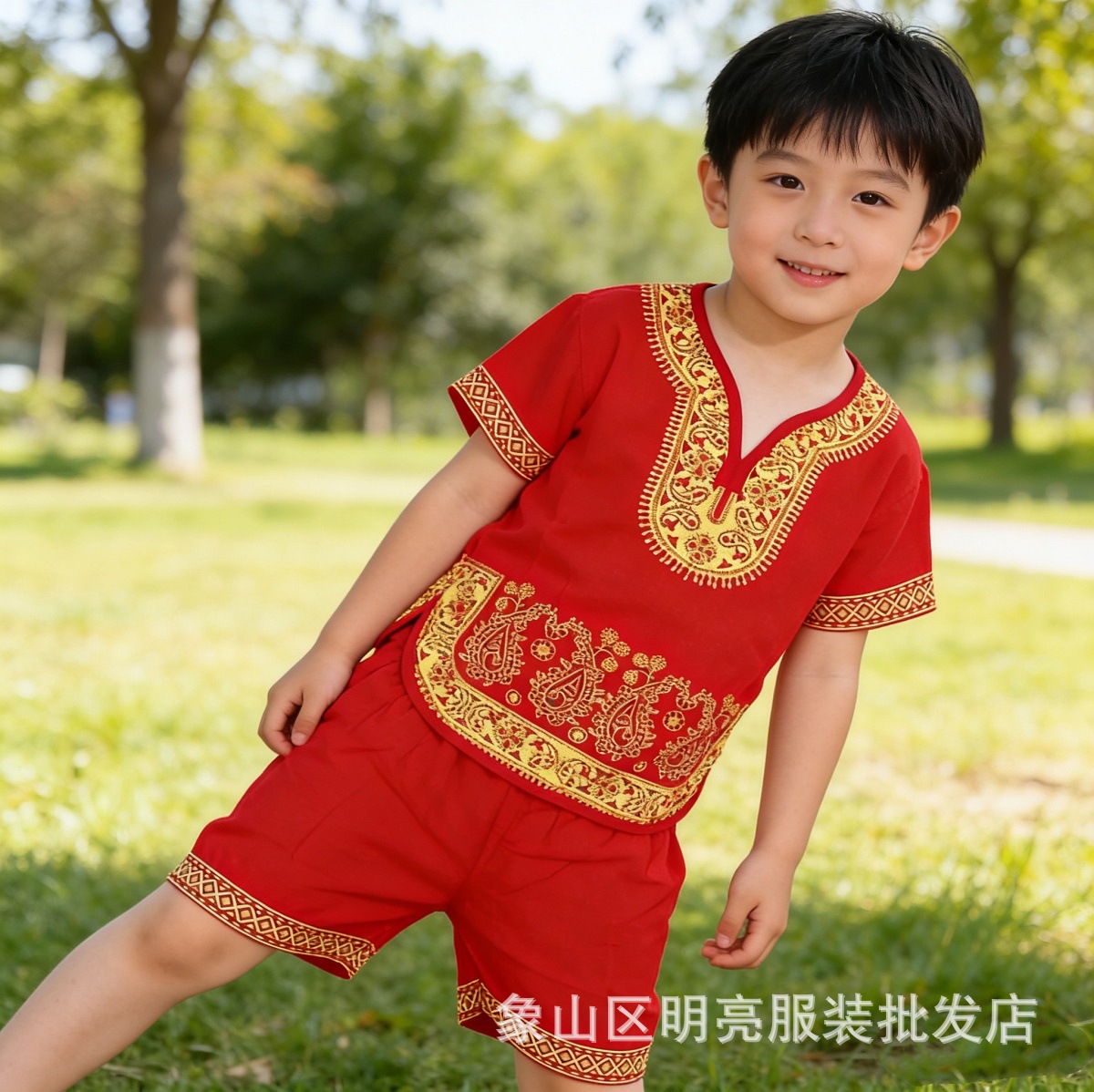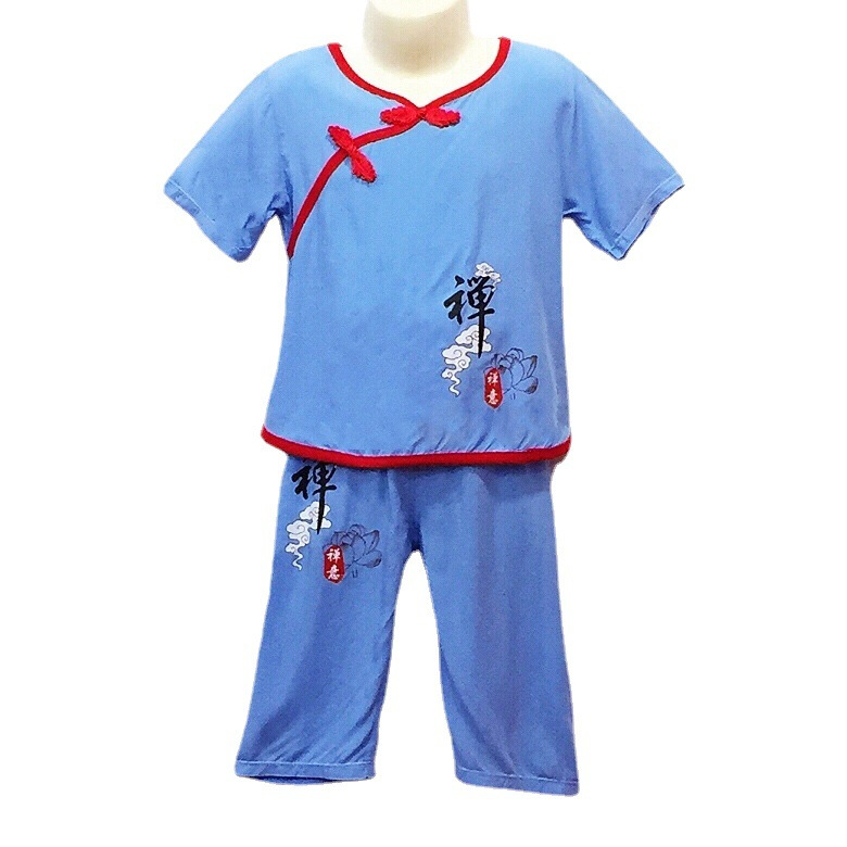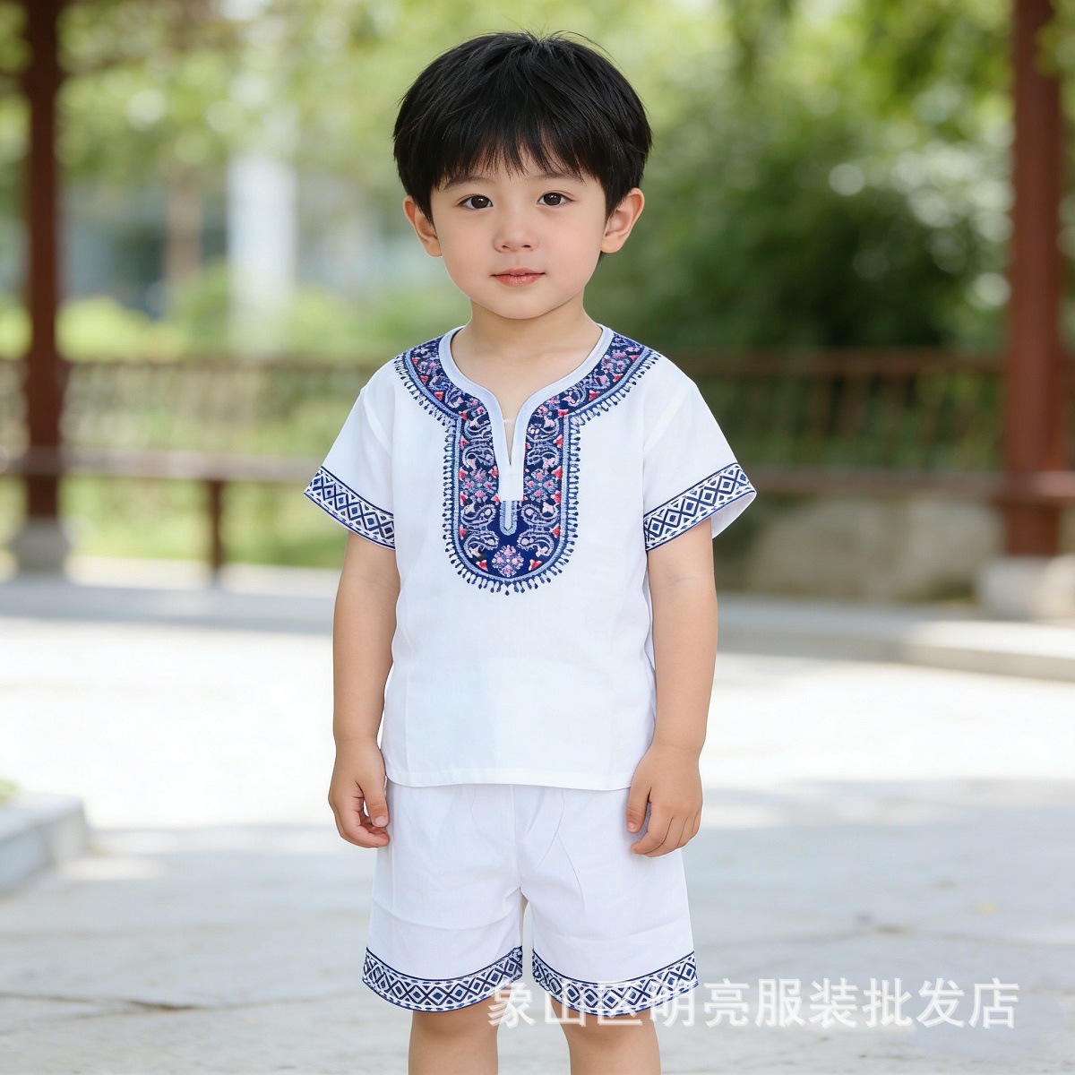 2026년 여름 신상 아동복 남아 민족풍 면 실크 프린트 반팔 반바지 여름 남아 세트 공장 직판스토어 가기