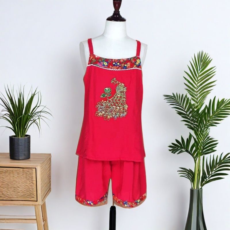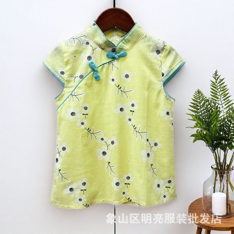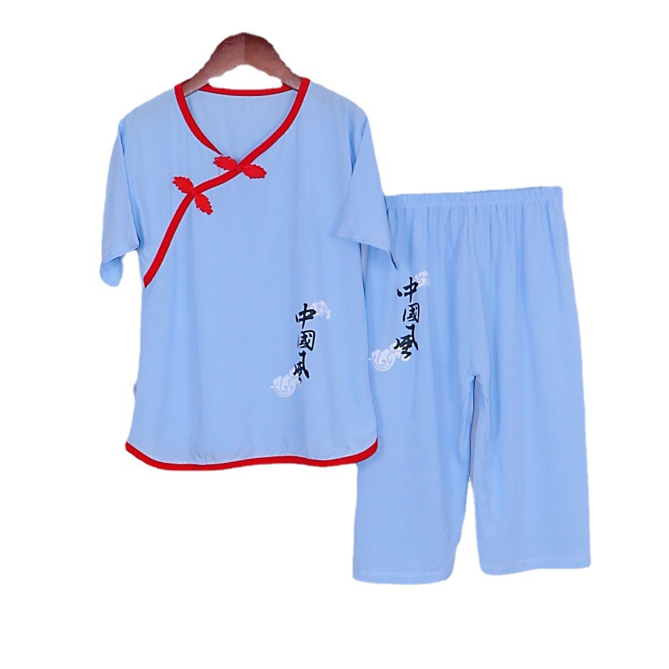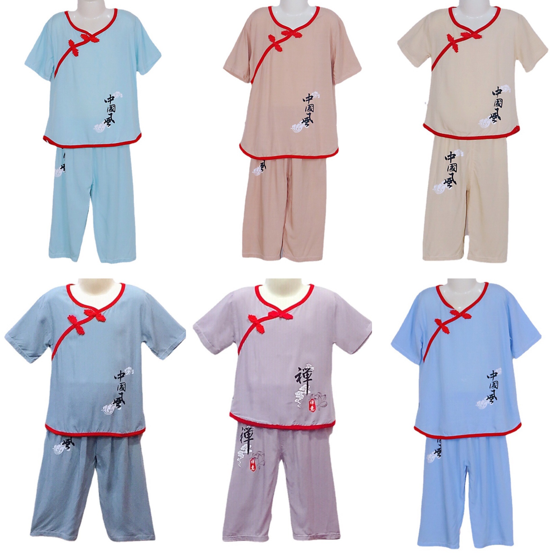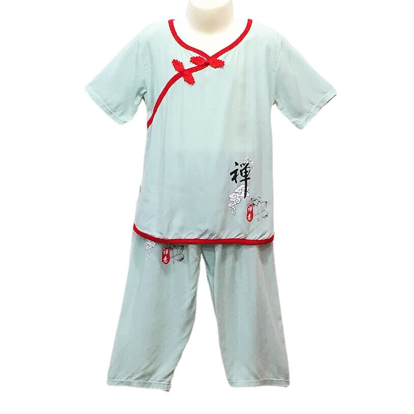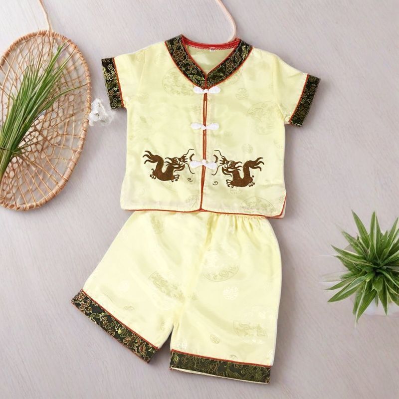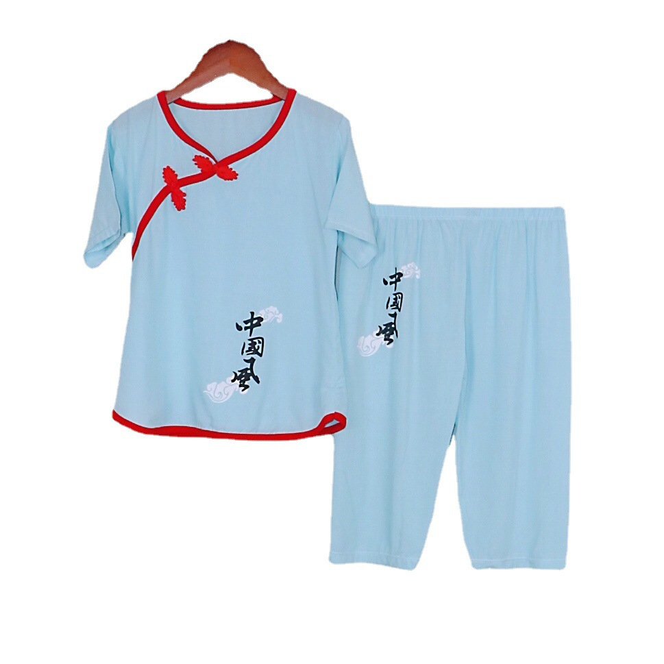 2026년 여름 신상 아동복 남아 민족풍 면 실크 프린트 반팔 반바지 여름 남아 세트 공장 직판스토어 가기