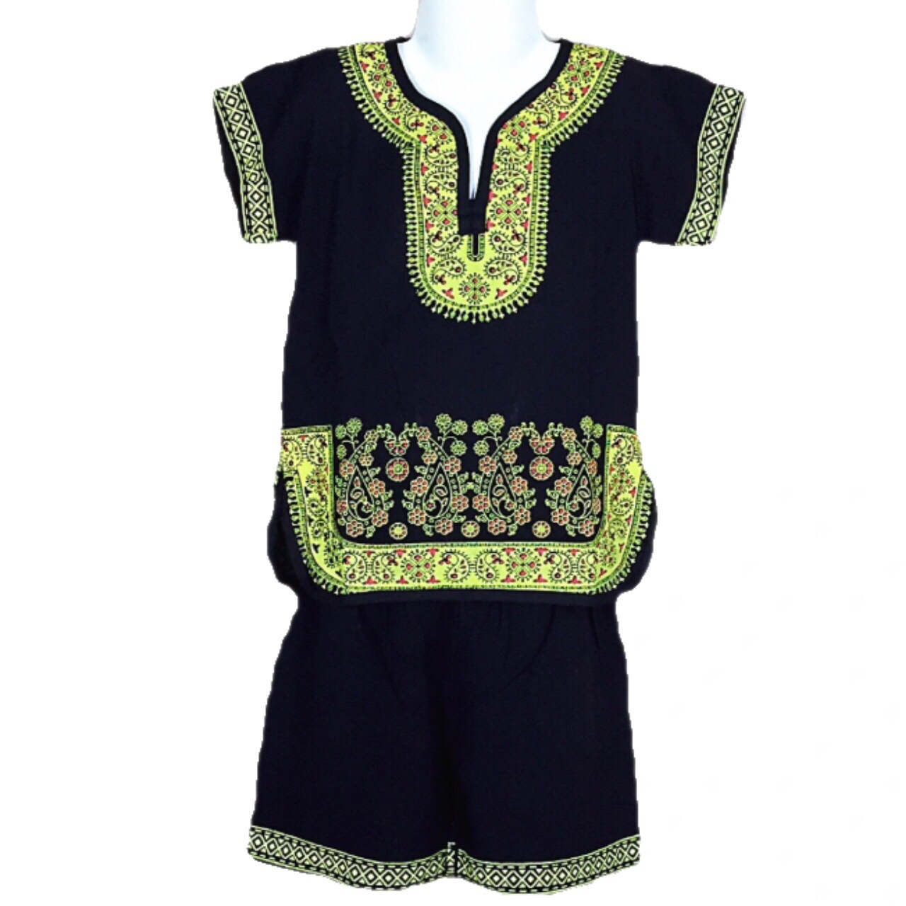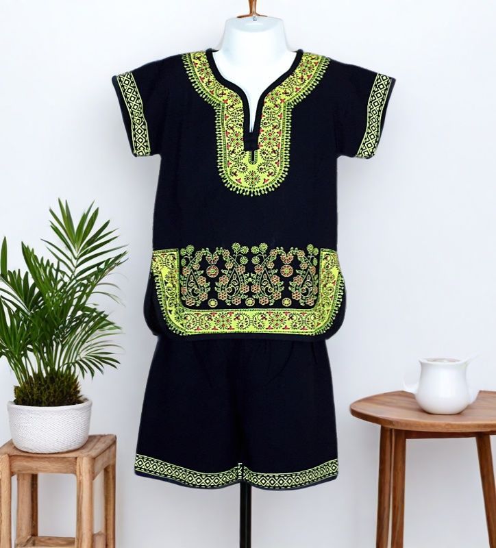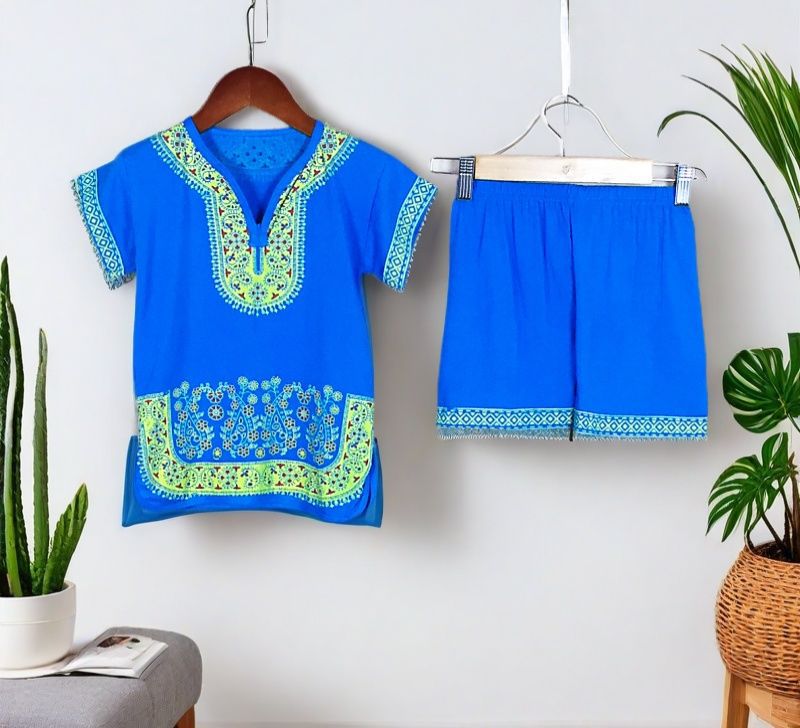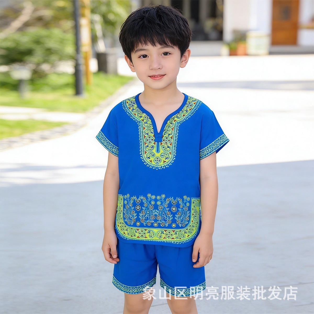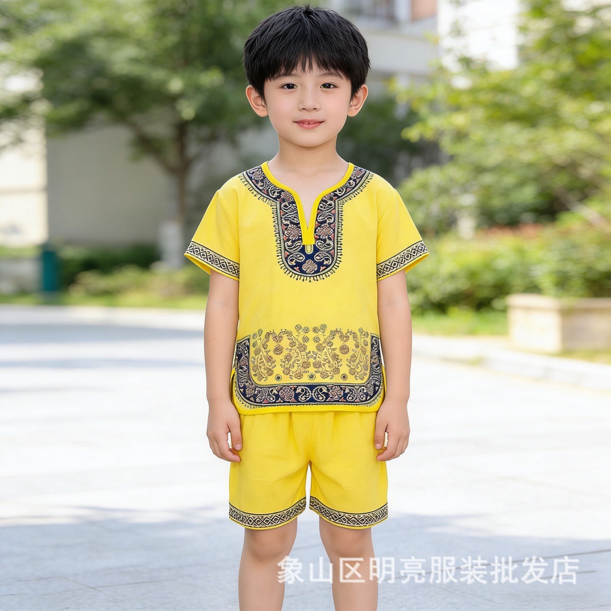 2026년 여름 신상 아동복 남아 민족풍 면 실크 프린트 반팔 반바지 여름 남아 세트 공장 직판