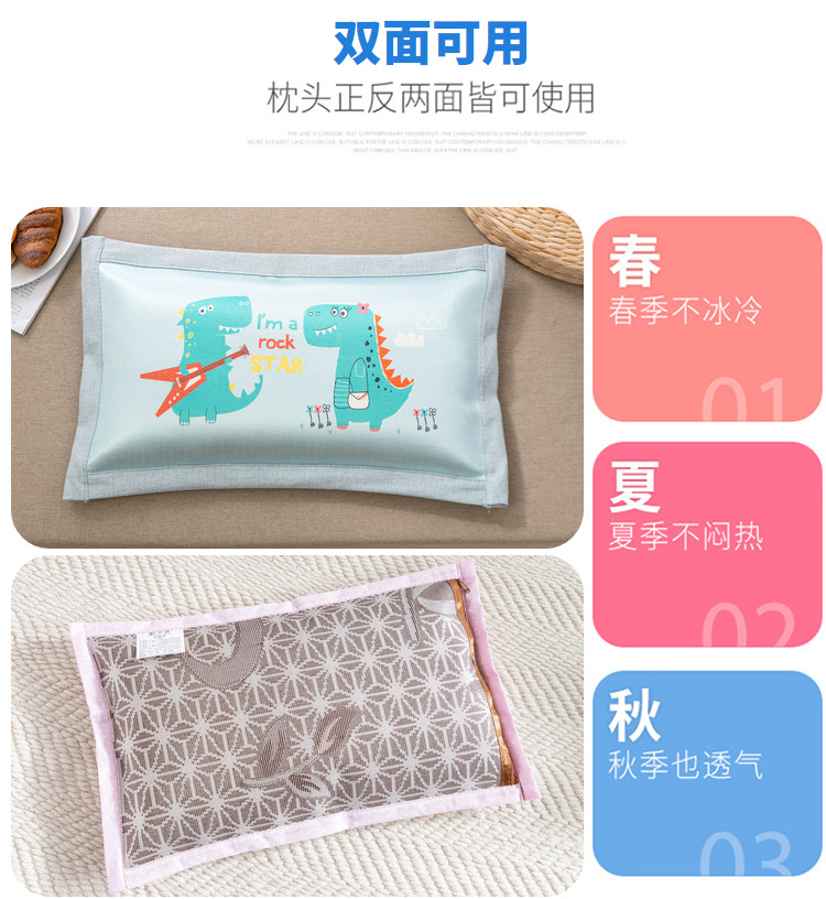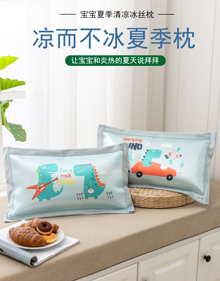 여름 어린이 베개 0-1 세 어린이 아이스 실크 차가운 베개 땀 흡수성 통기성 3-6-9 세 유치원 학생 메밀 베개스토어 가기
