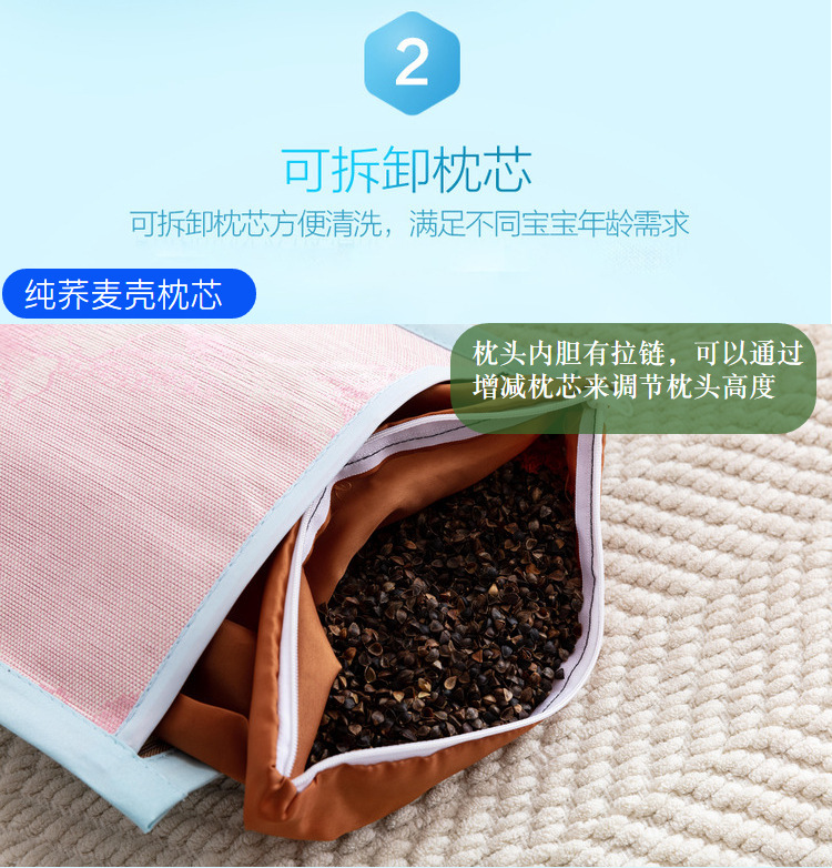 여름 어린이 베개 0-1 세 어린이 아이스 실크 차가운 베개 땀 흡수성 통기성 3-6-9 세 유치원 학생 메밀 베개