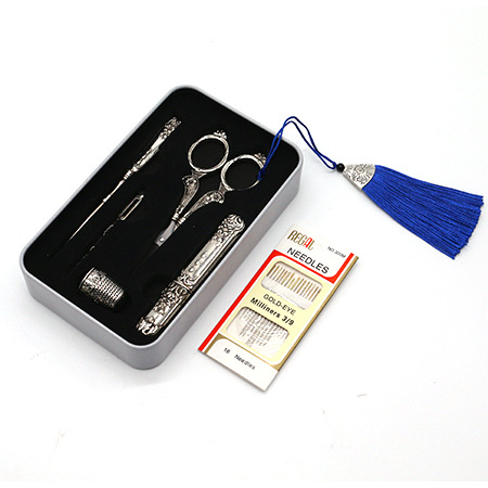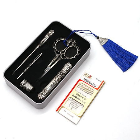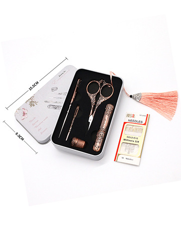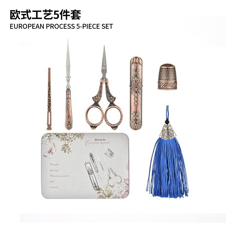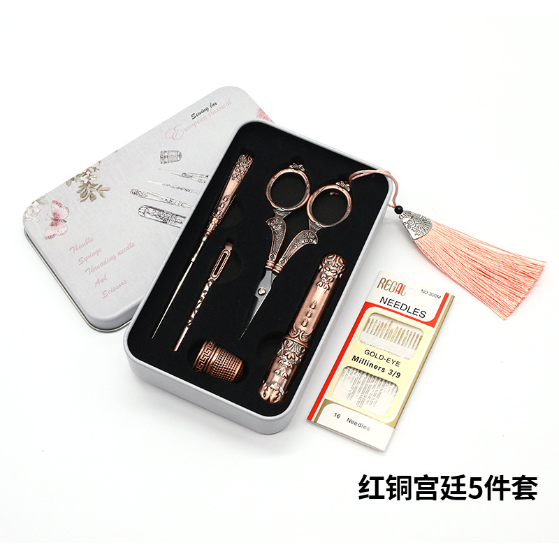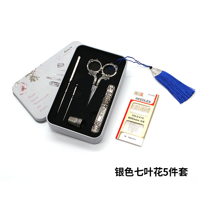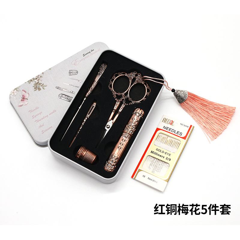 百合剪刀:11.4*5*2.9cm 梅花剪刀:11.4*5.3*3cm 七叶花剪刀:9*5.5*2.9cm 锥子尺寸:12*1*0.5cm 顶针尺寸:2*1.5cm 全套重量:0.19 KG |