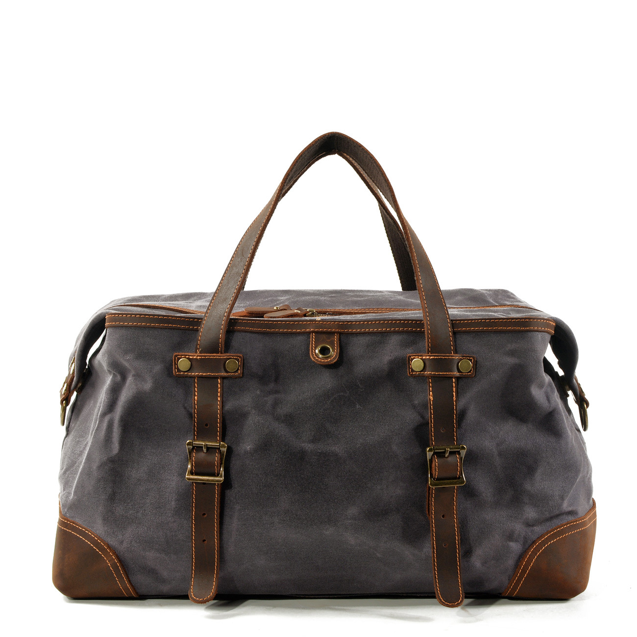 面料:防水油蜡帆布搭配疯马头层牛皮