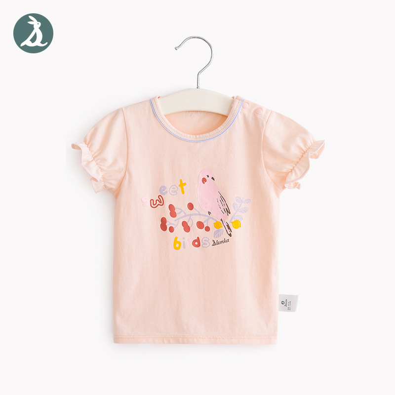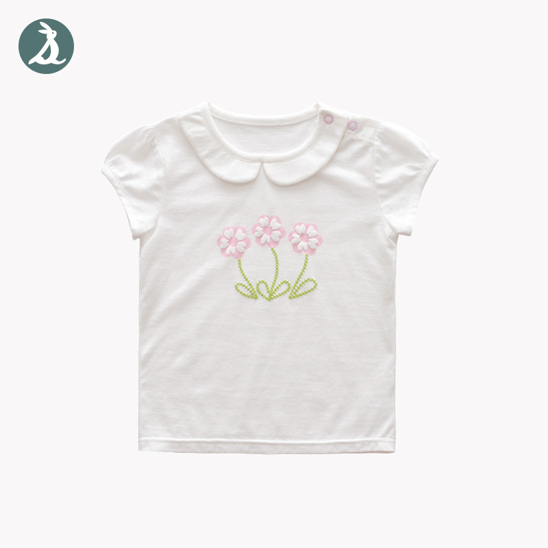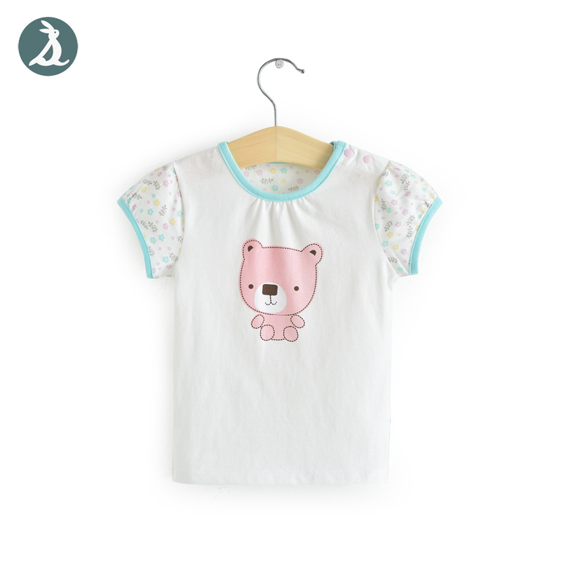 소녀 퓨어 코튼 티셔츠 여름 신선한 스타일 소녀 랜턴 슬리브 숄더 버클 어린이 반팔 티셔츠 베이비 코튼 탑스토어 가기