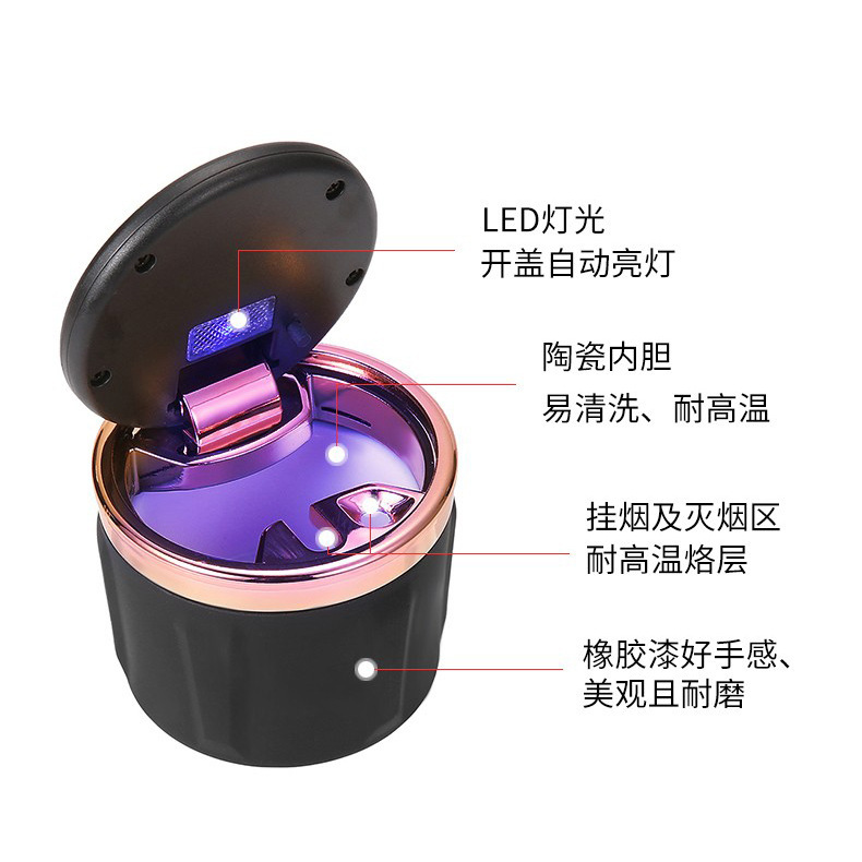 자동차용 LED 조명이있는 특수 자동차 재떨이 세라믹 내부 탱크 재떨이