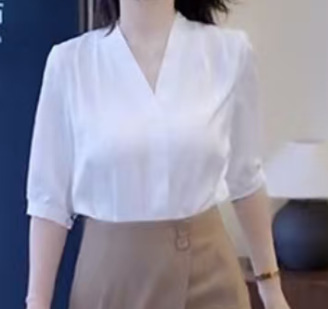 화이트 쉬폰 셔츠 여성 v 넥 한국 스타일 긴팔 루즈 탑 화이트 셔츠 한국 스타일 2025 여름 전문 착용 여성스토어 가기
