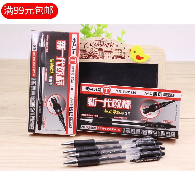 天卓31220按动欧标中性笔 0.5文具签字笔 跳动碳素笔 正品秒杀价
