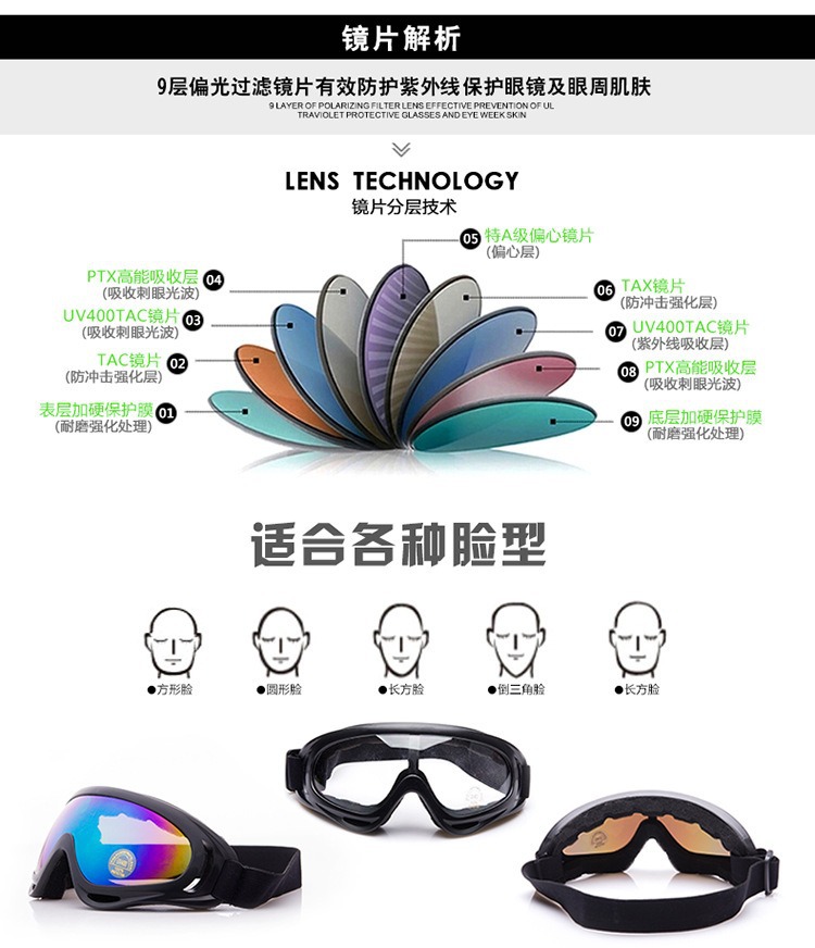 야외 승마 X400 안경 스키 고글 자전거 오토바이 스포츠 방풍 고글 전술 보호 안경