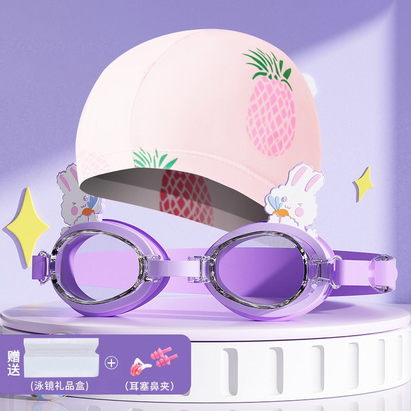 • 핑크 파인애플 수영 모자 + 보라색 토끼 수영 고글