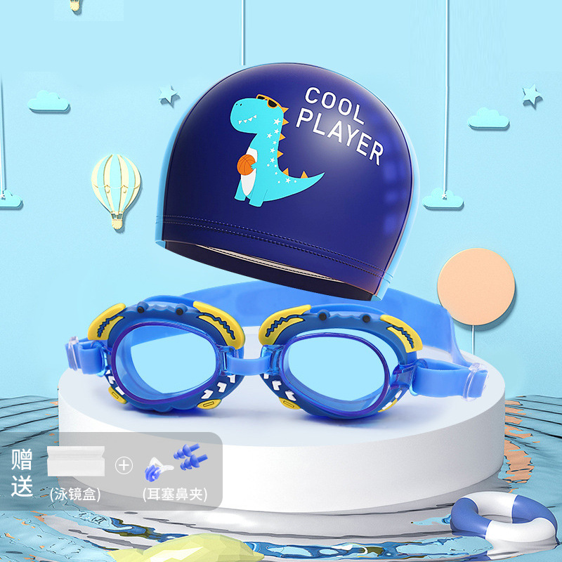 • 네이비 공룡 수영 모자 블루 게 고글
