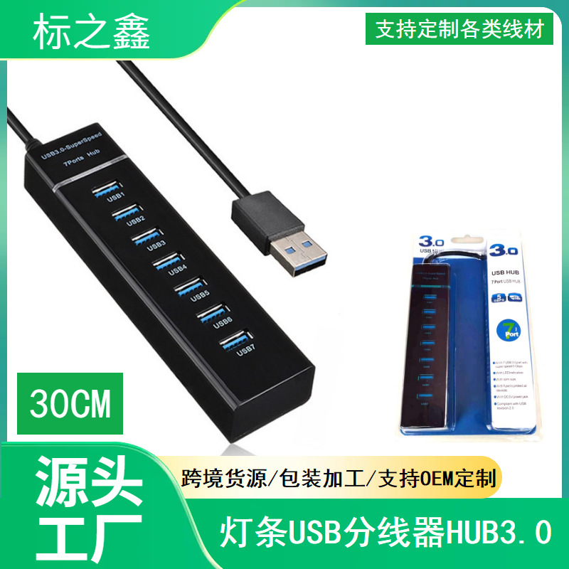 • 라이트 스트립 7포트 3.0HUB 검정색 30CM
