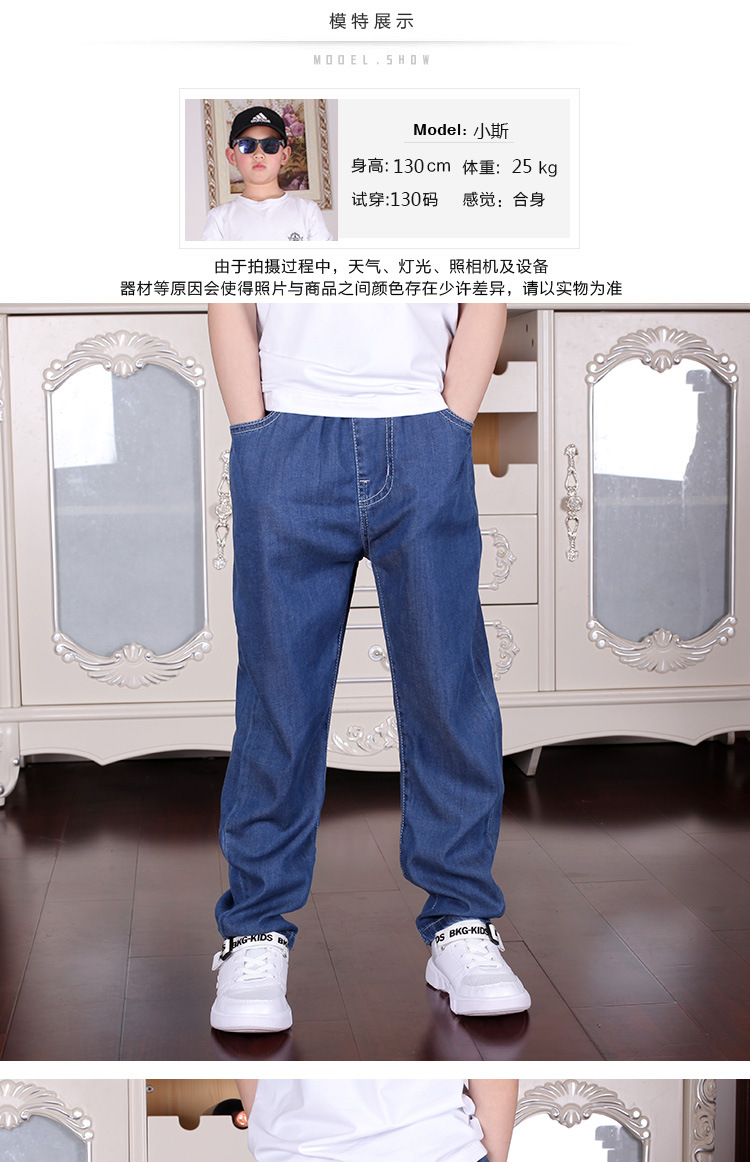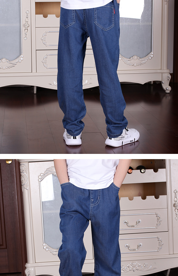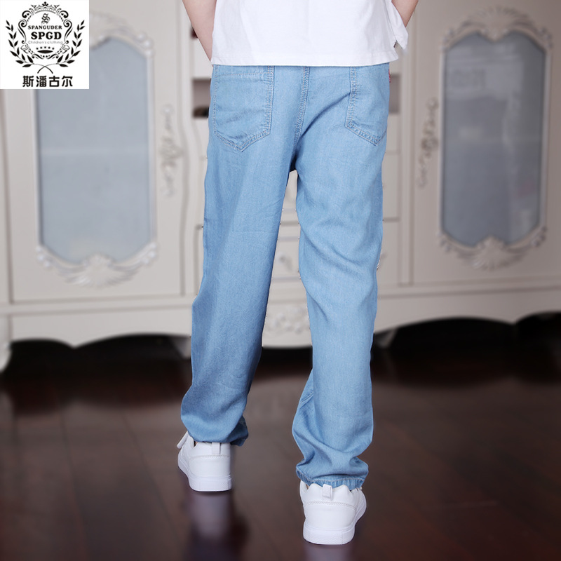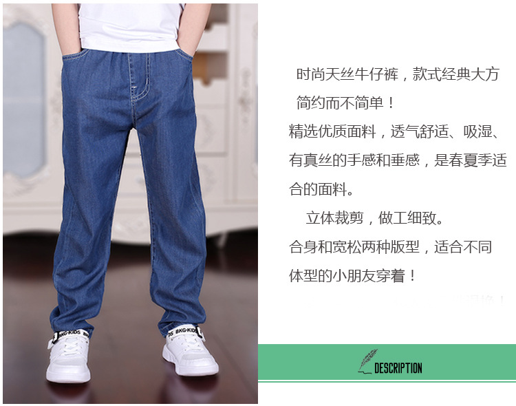 남자의 아동 의류 2023 봄과 여름 새로운 Tencel 데님 얇은 바지 부드럽고 편안한 모기 방지 바지 도매 머리카락의 세대스토어 가기
