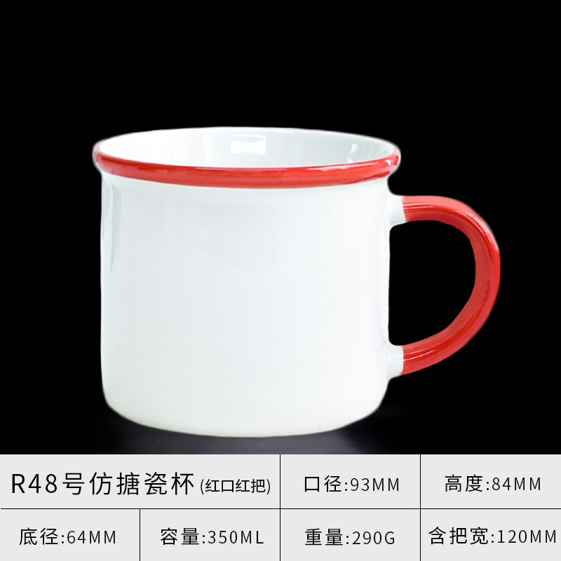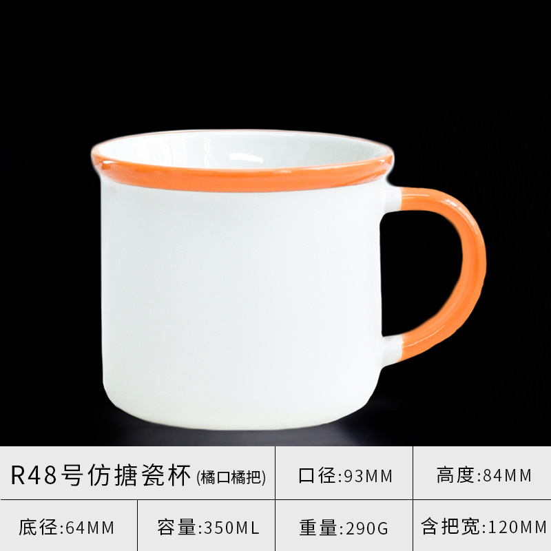 • R48 모조 에나멜 컵(주황색 입과 주황색 손잡이)