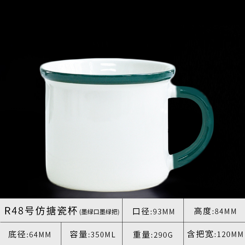 • R48 모조 에나멜 컵(짙은 녹색 입과 짙은 녹색 손잡이)