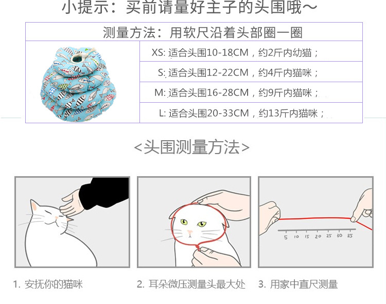 【规格】:XS, 适合头围10-18cm的(2斤内幼猫)