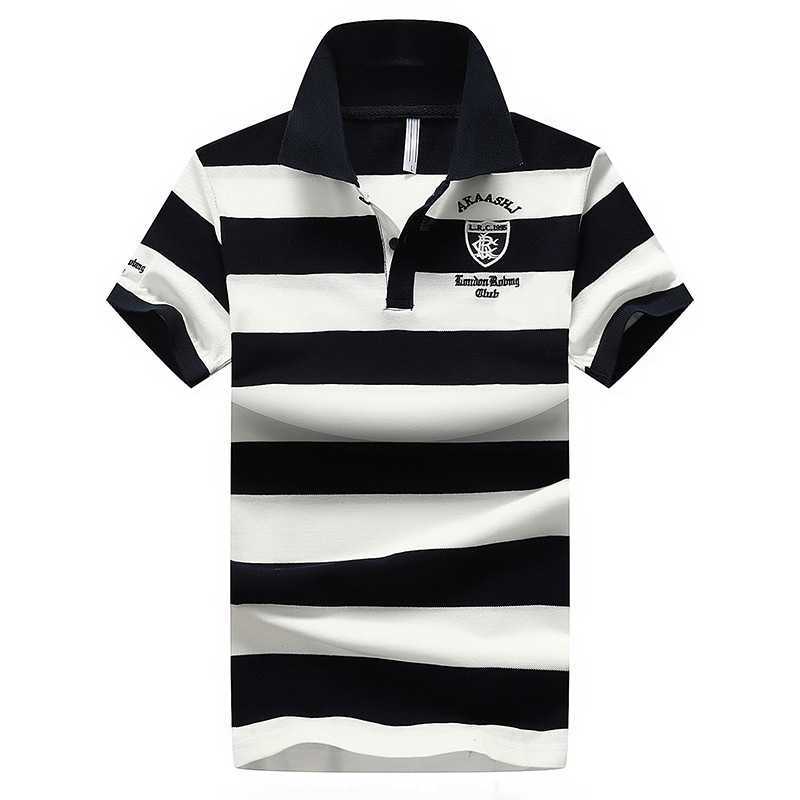 여름 새 남자의 면 반팔 폴로 셔츠 패션 스트라이프 반팔 티셔츠 남자의 대외 무역 플러스 사이즈 라펠 티셔츠