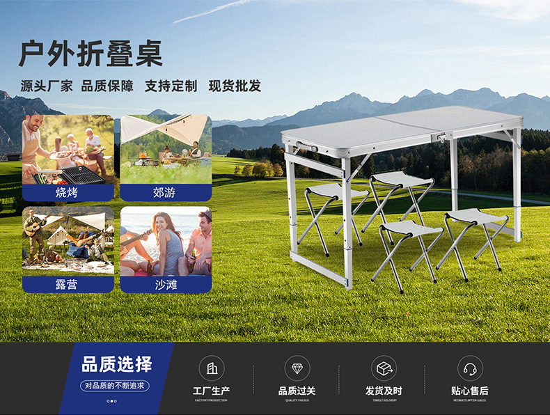 꾸준한 광장 튜브 접이식 테이블 야외 접이식 테이블과 의자 캠핑 스톨 테이블 가정용 간단한 식탁 및 푸시 테이블