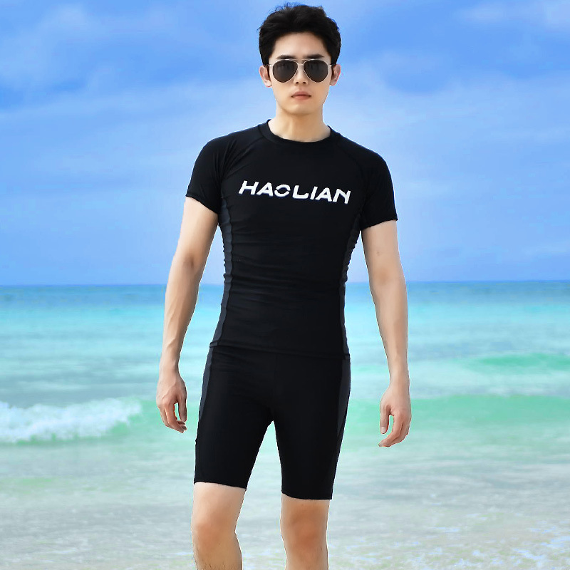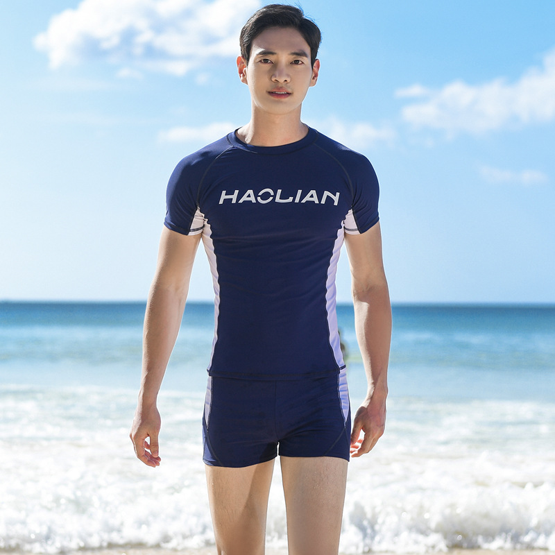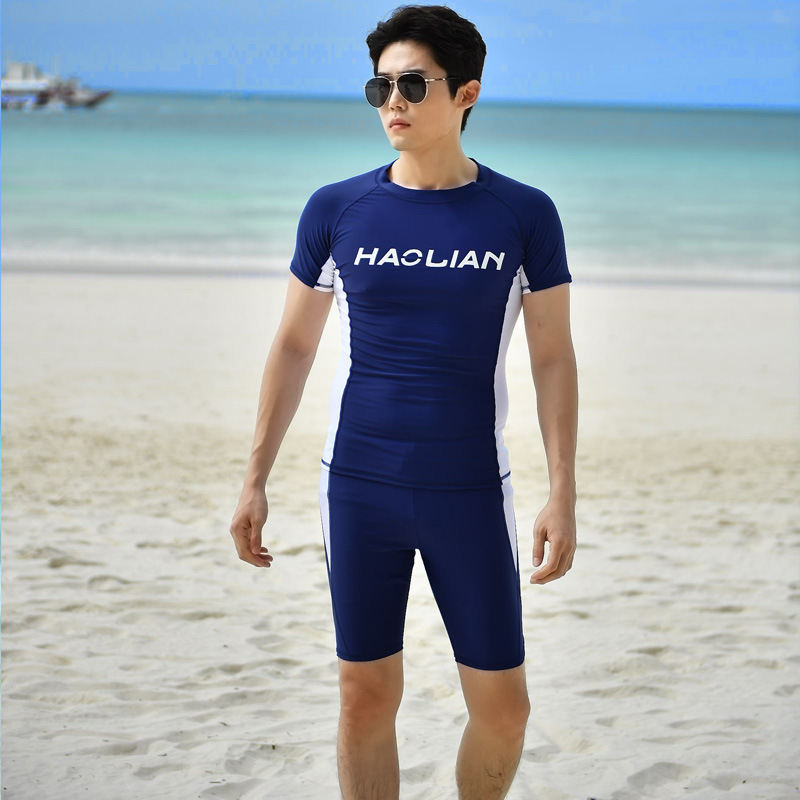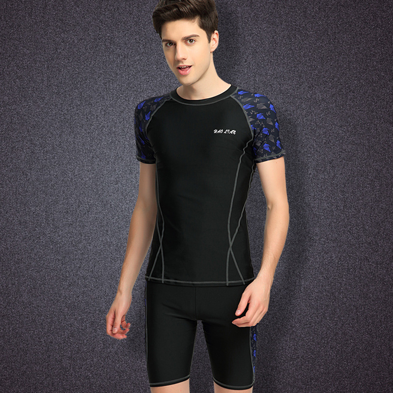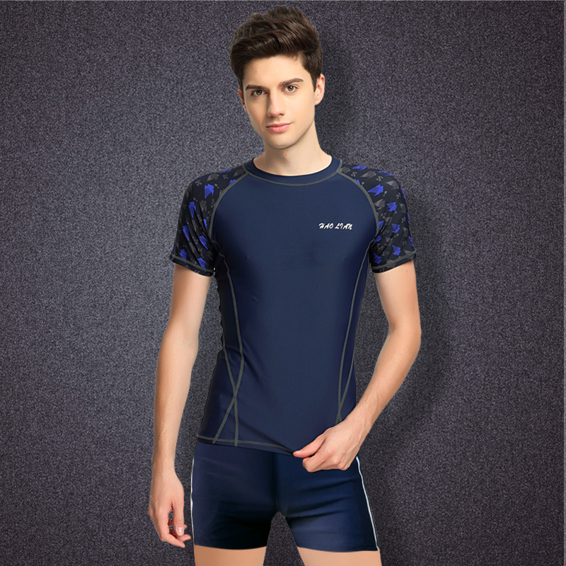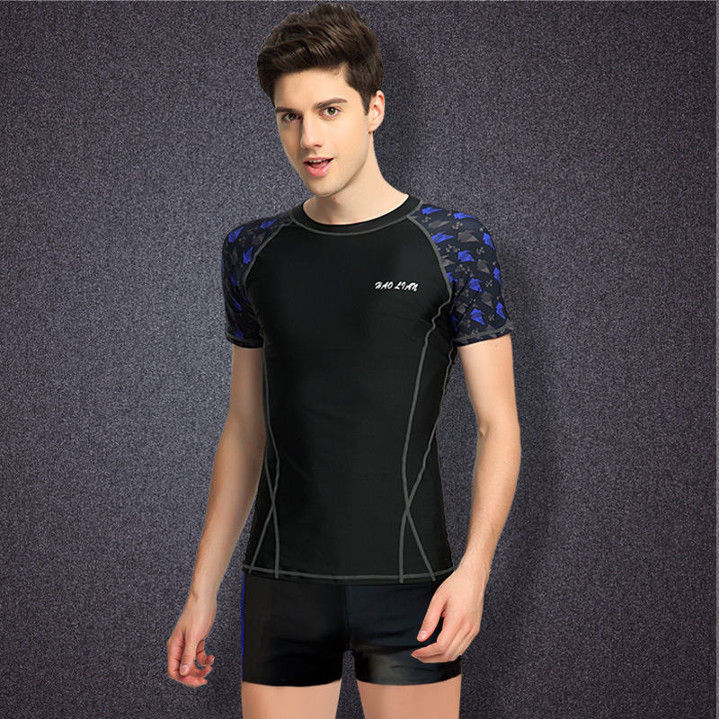 새로운 남성 수영복 정장 반팔 탑 복서 수영 트렁크 플러스 사이즈 스플릿 수영복 빠른 건조 국경 도매 사용자 정의스토어 가기
