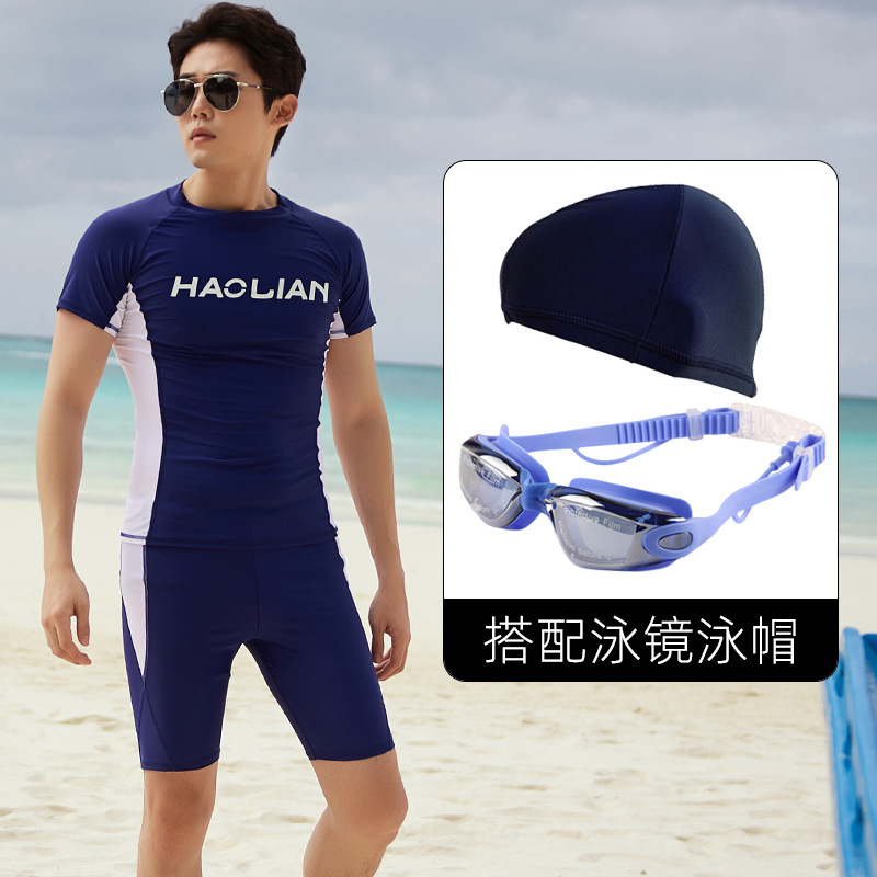 • 9573 반팔 재킷 + 복서 반바지 (네이비) + 수영 고글 + 수영 모자