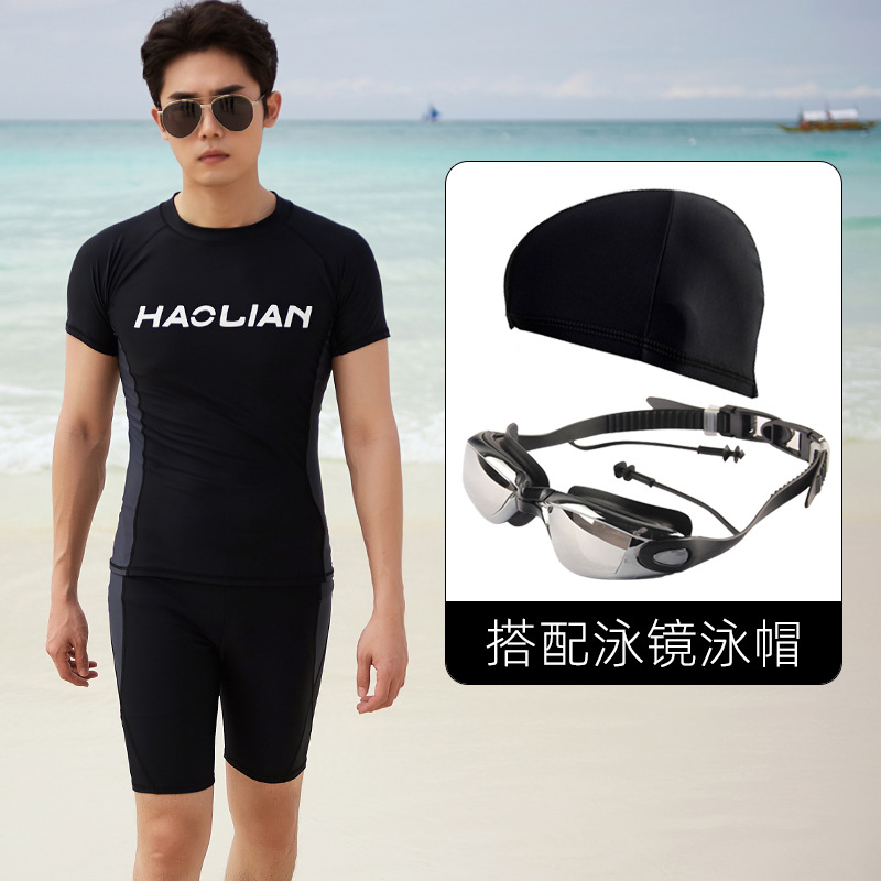 • 9590 반팔 셔츠 + 5 팬츠 (블랙) + 수경 + 수영 모자