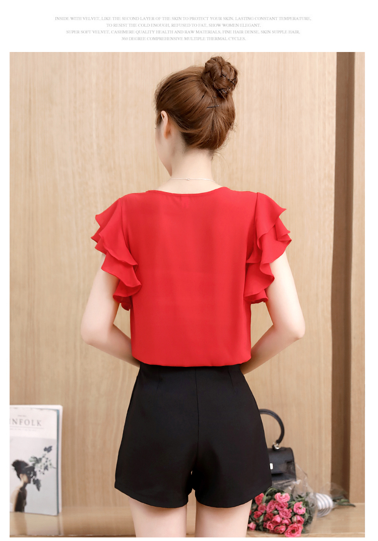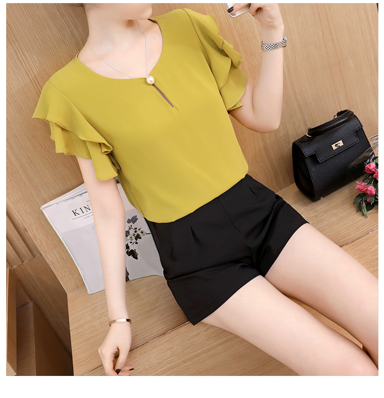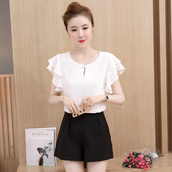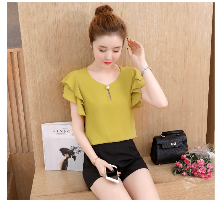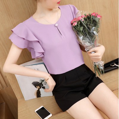 2025 여름 새로운 한국 스타일 달콤한 프릴 반팔 비즈 탑 기질 느슨한 슬리밍 다목적 쉬폰 셔츠스토어 가기