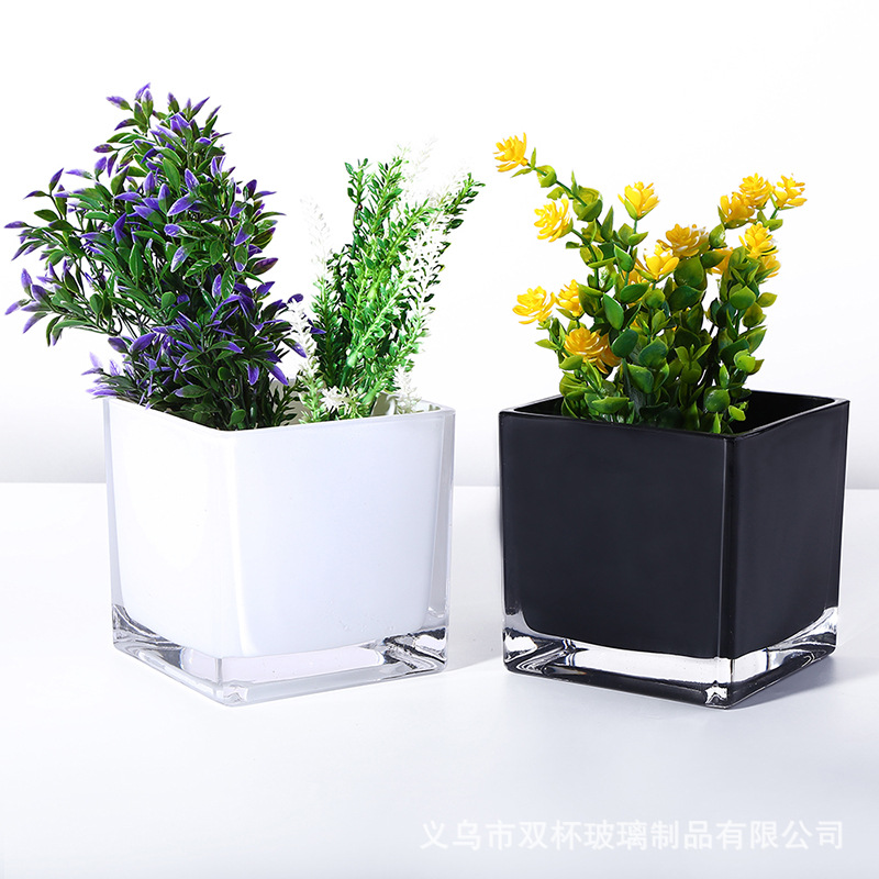 간단한 사각형 수경 유리 그릇 블랙 스퀘어 실린더 녹색 콘 물 릴리 구리 허브 수경 화분 유리 꽃병스토어 가기