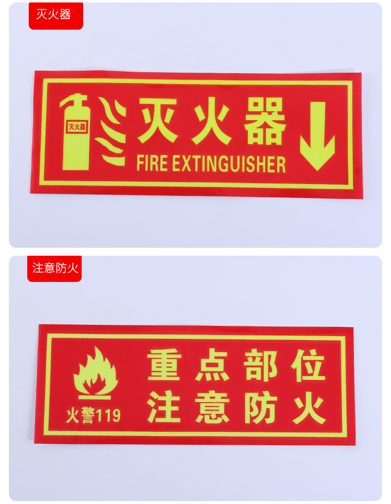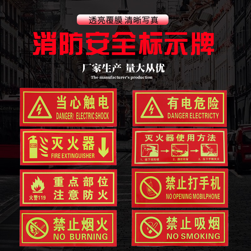 금연 로고 안전 표지판 PVC 빛나는 벽 스티커 소화전 소화기 사용 방법 재고스토어 가기