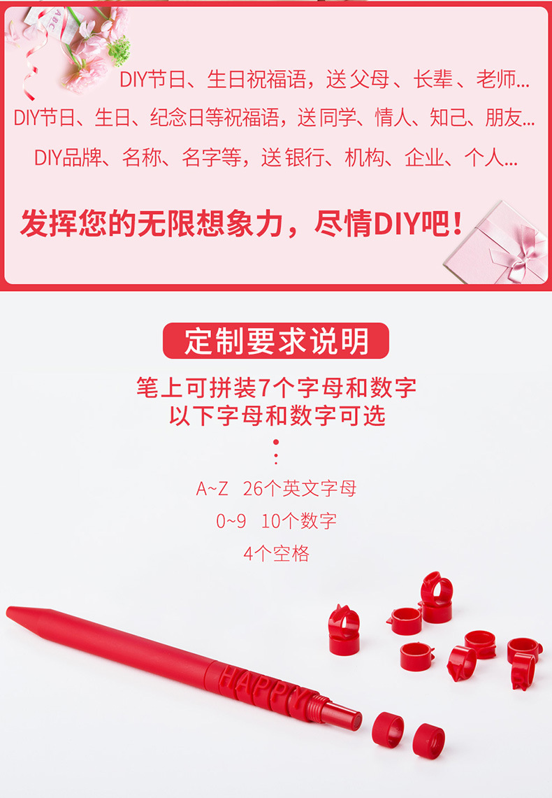 델시 문구 컬러풀 푸쉬버튼 DIY 알파벳 맞춤 펜 창의적인 선물 펜 광고용 학생용품 젤 펜