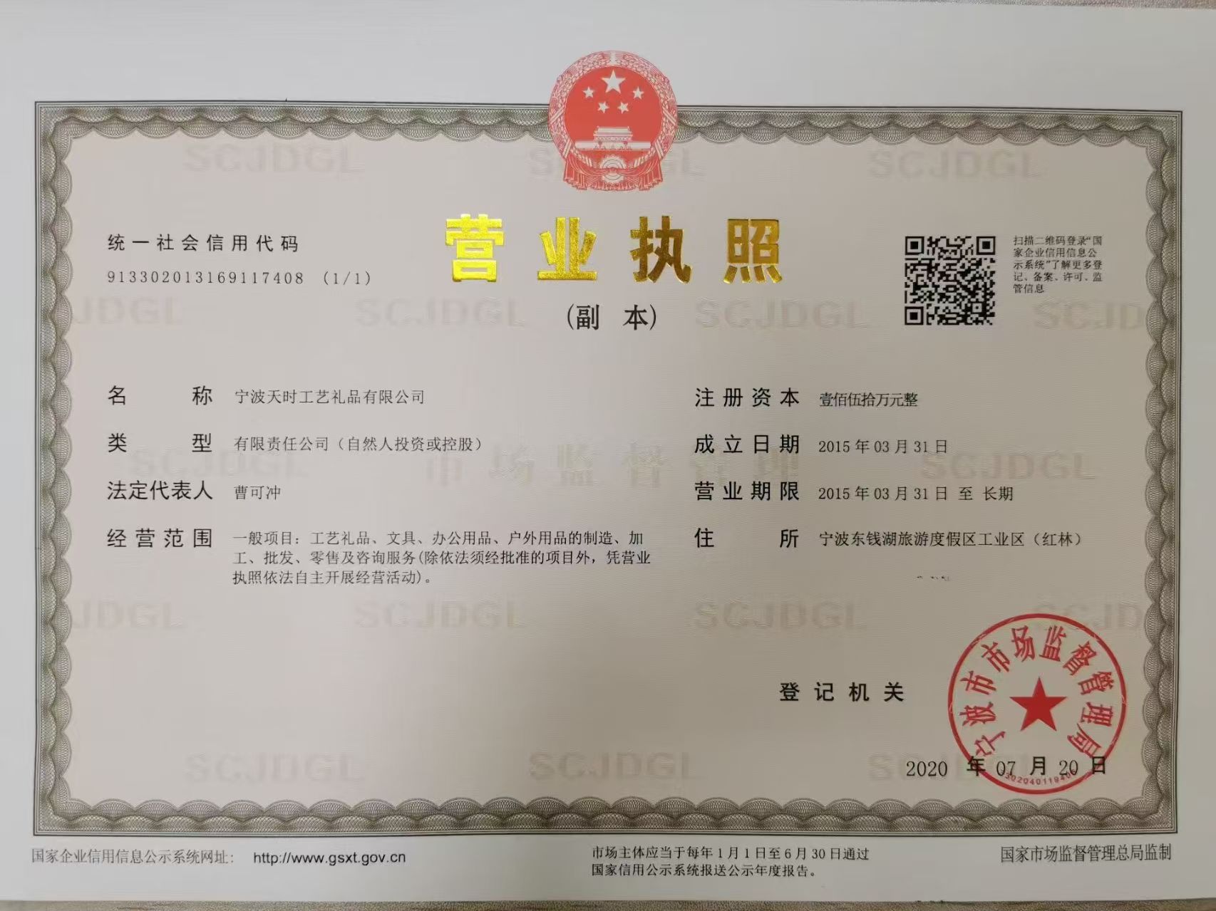웨이하이센터상호: 威海韩运国际贸易有限公司 法定代表人: 朱 勇奎 统一社会信用代码: 91371000MA3U6XGW6N 进出口: 37109409C6
