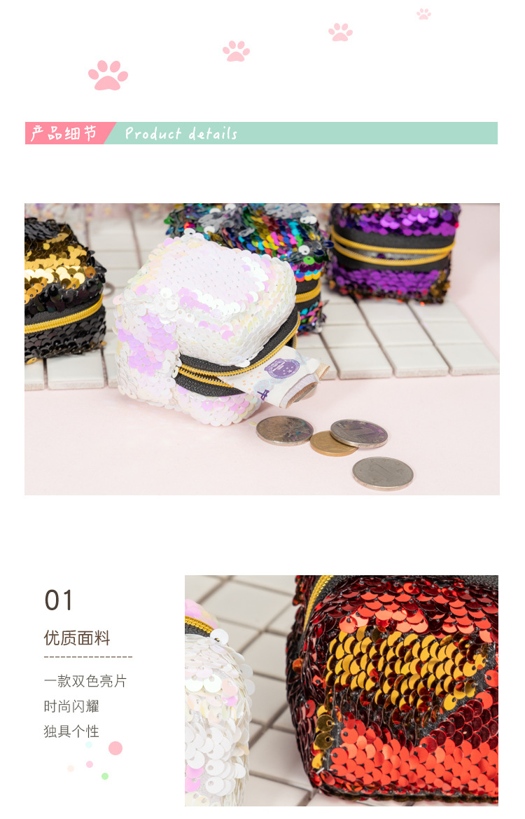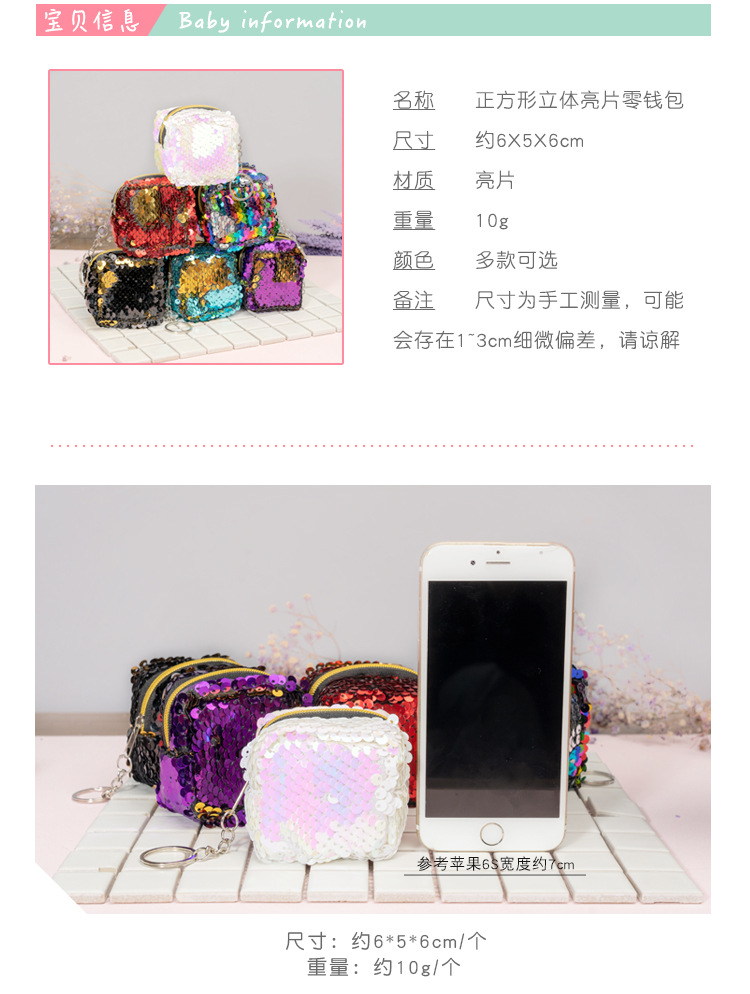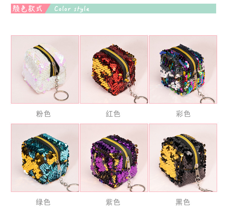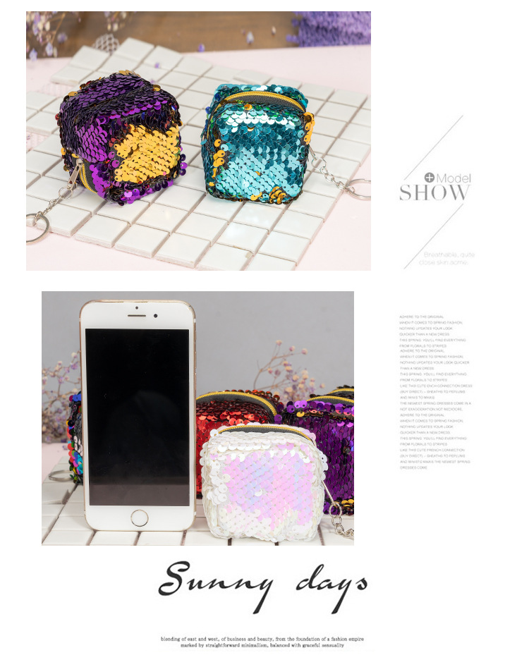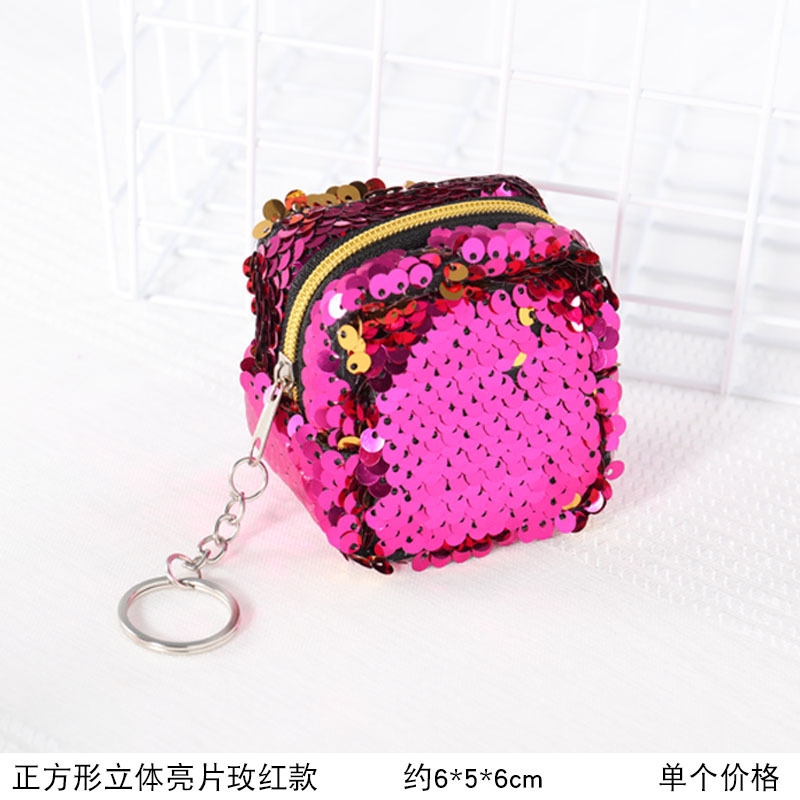 새로운 크리에이티브 스팽글 스퀘어 입체 미니 스몰 백 미니 코인 백 여성용 동전 지갑 키 백