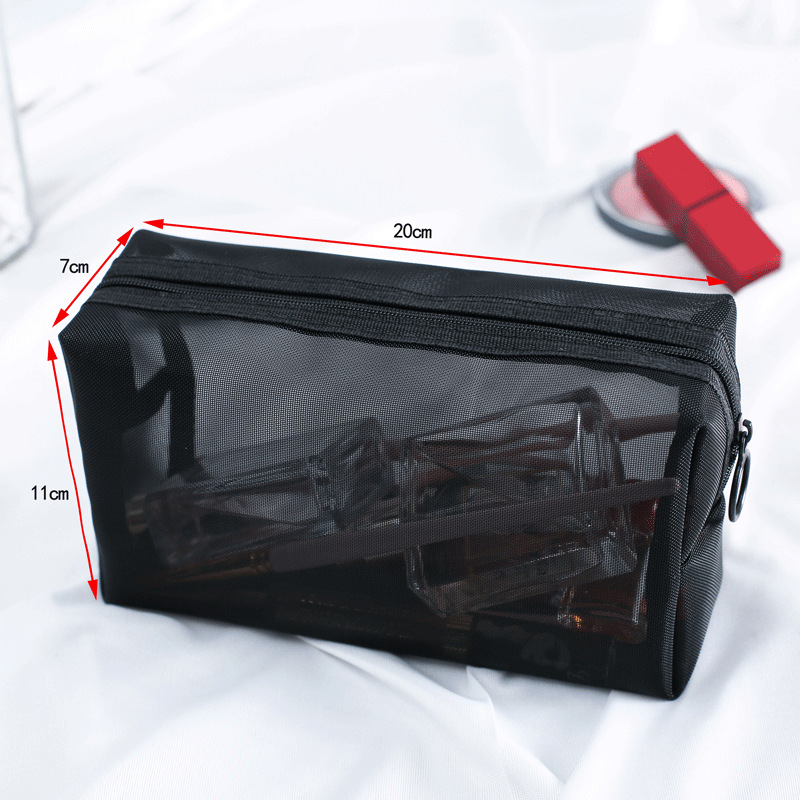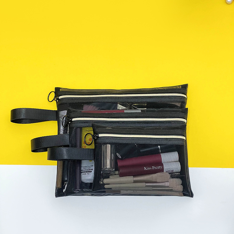 黑色透明尼龙网纱化妆包三件套