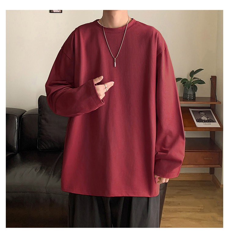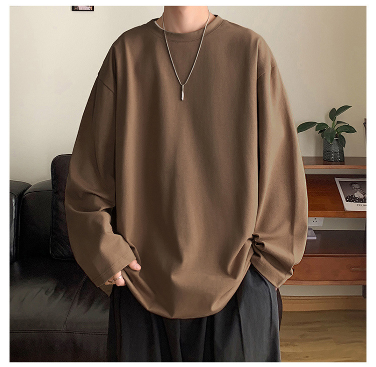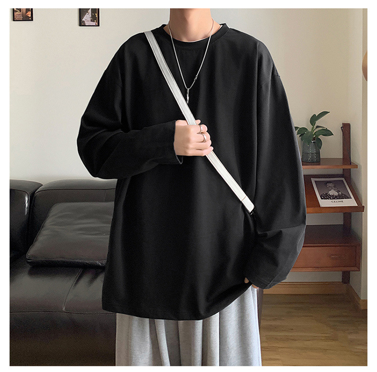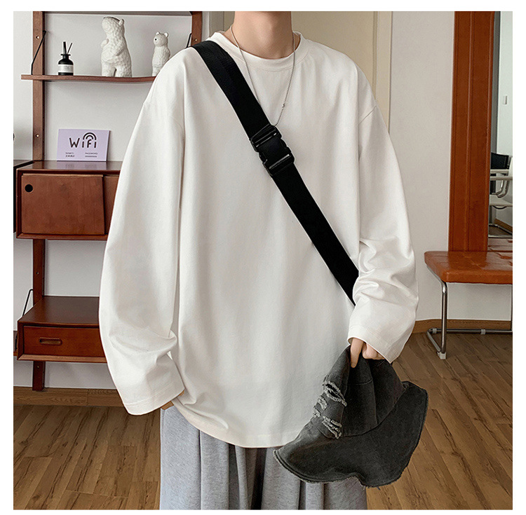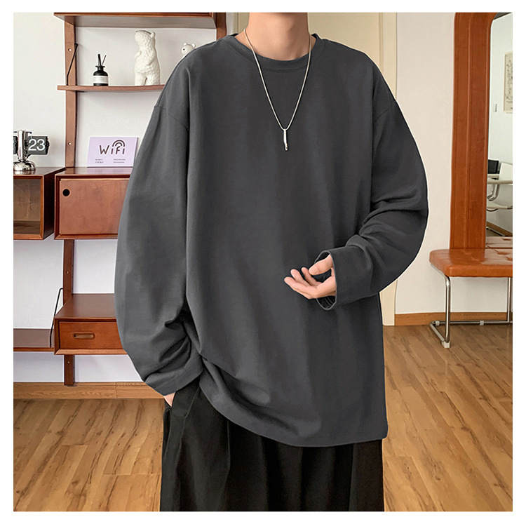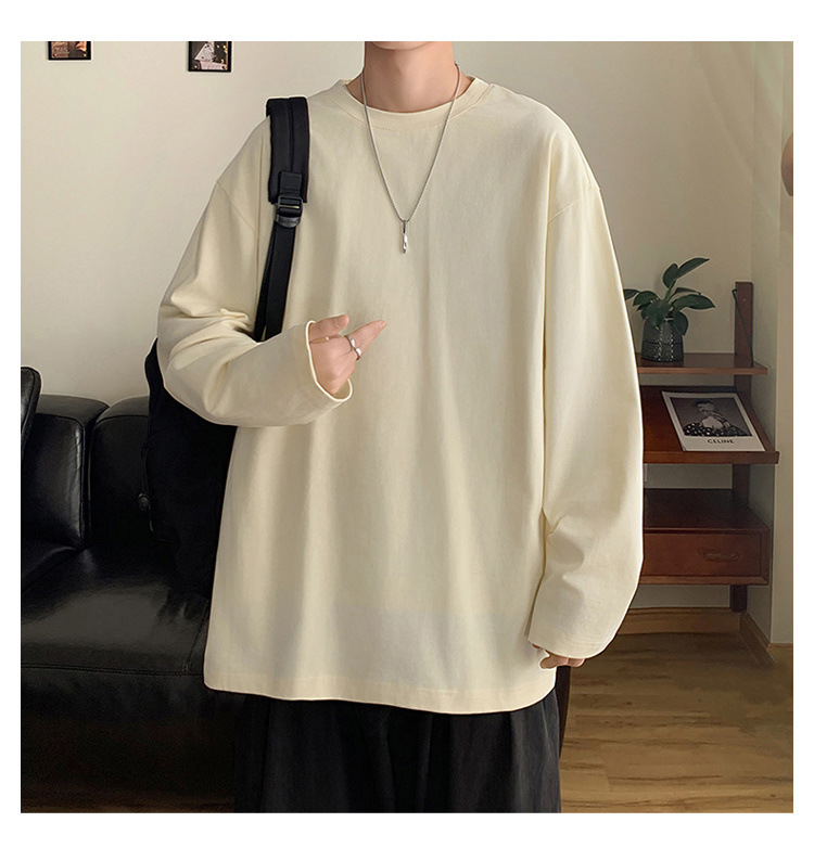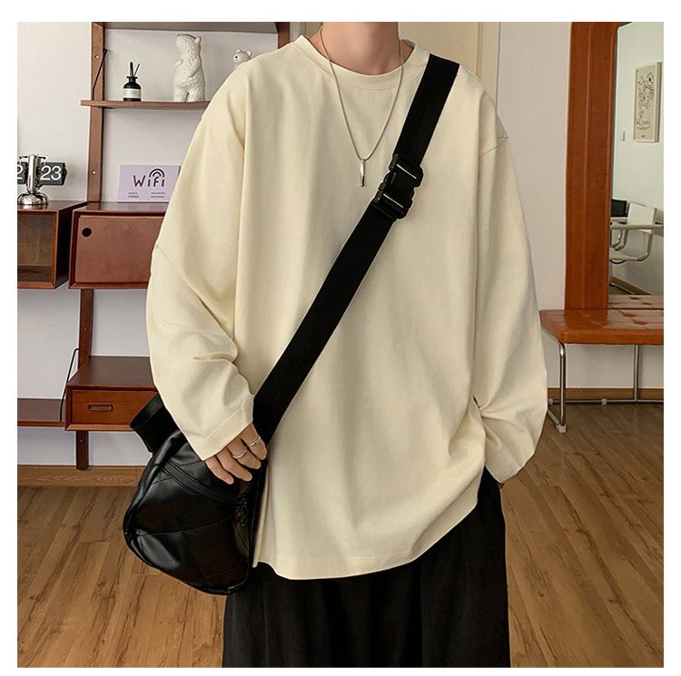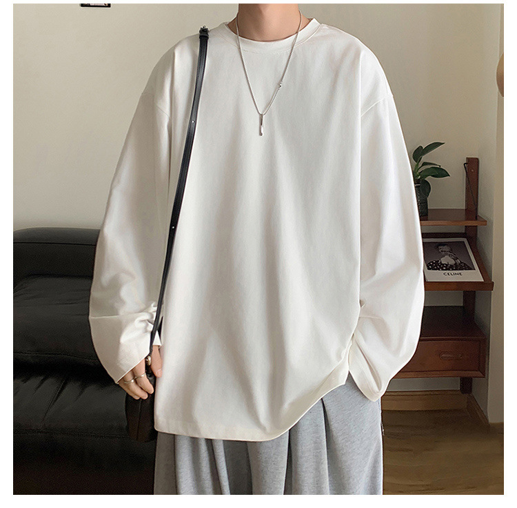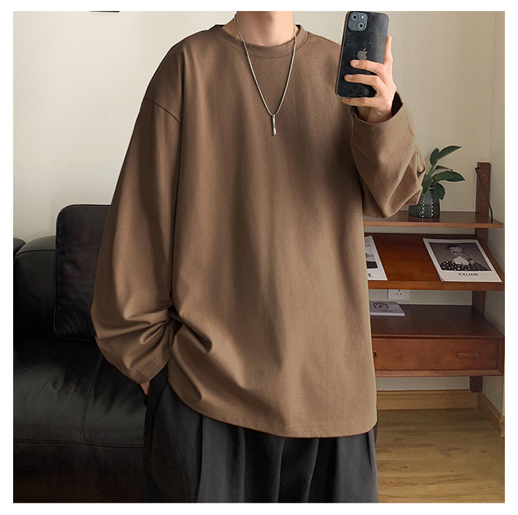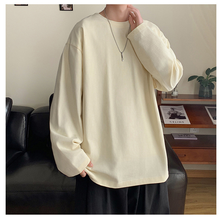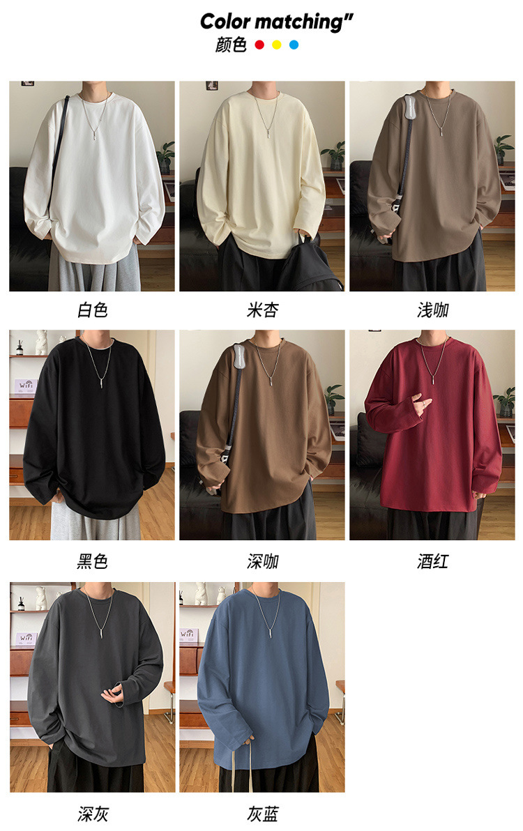 이른 봄 새로운 200g 티셔츠 남성베이스 셔츠 남자 스웨터 남자 일본 긴 소매 트렌디 브랜드 단색 티셔츠