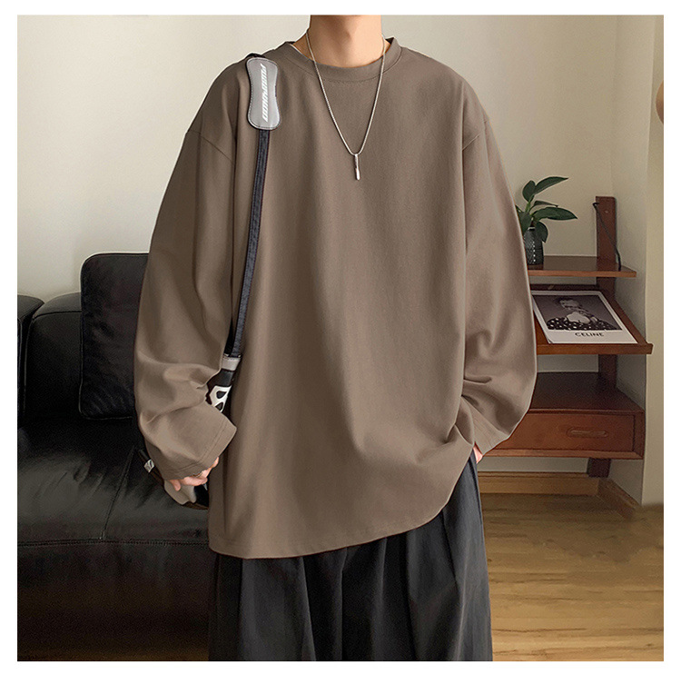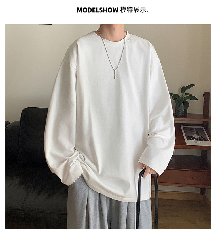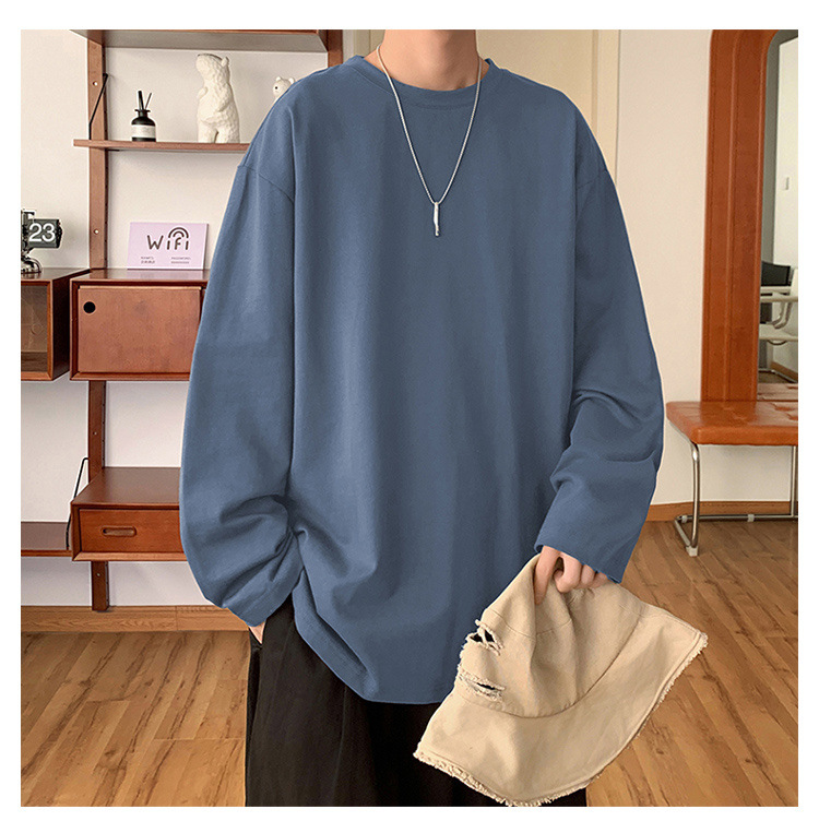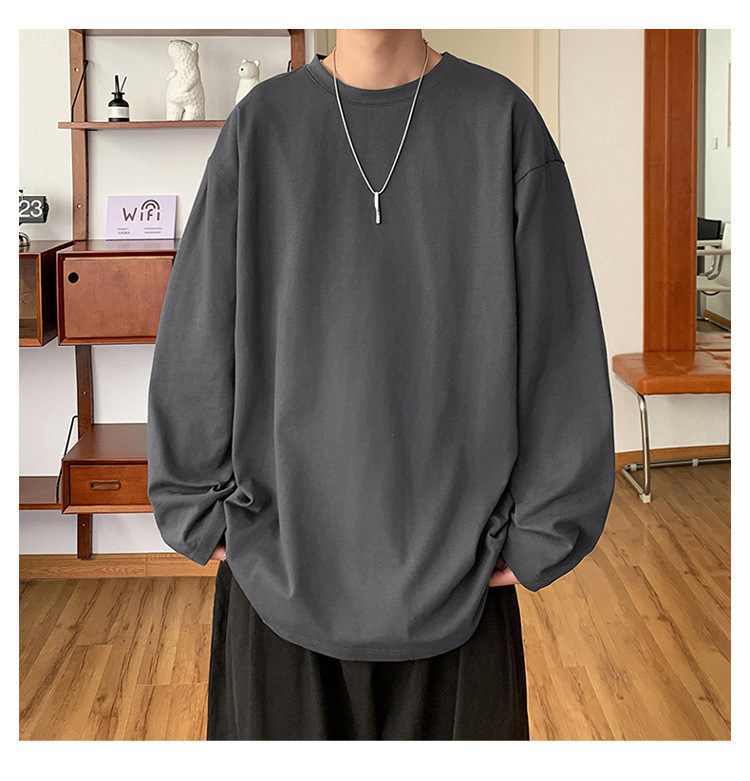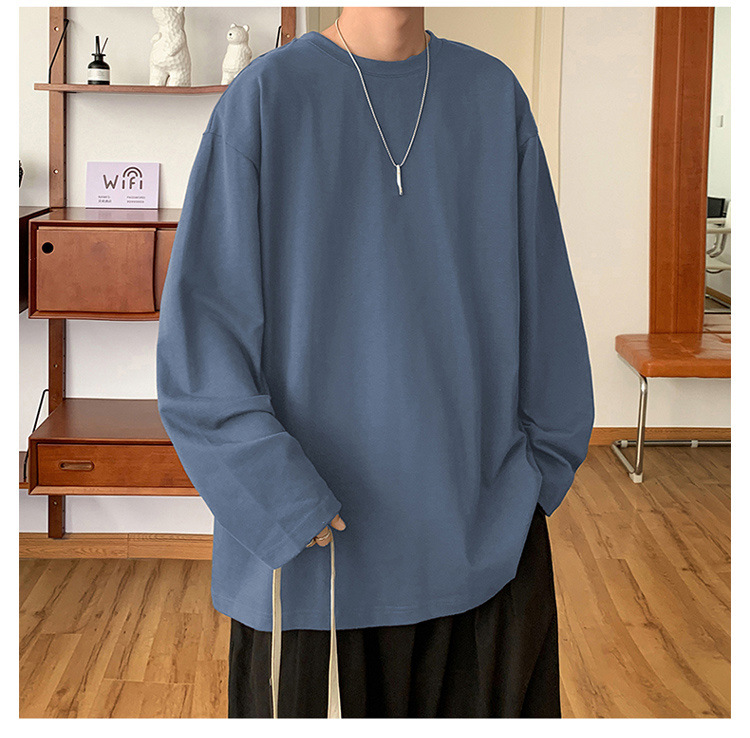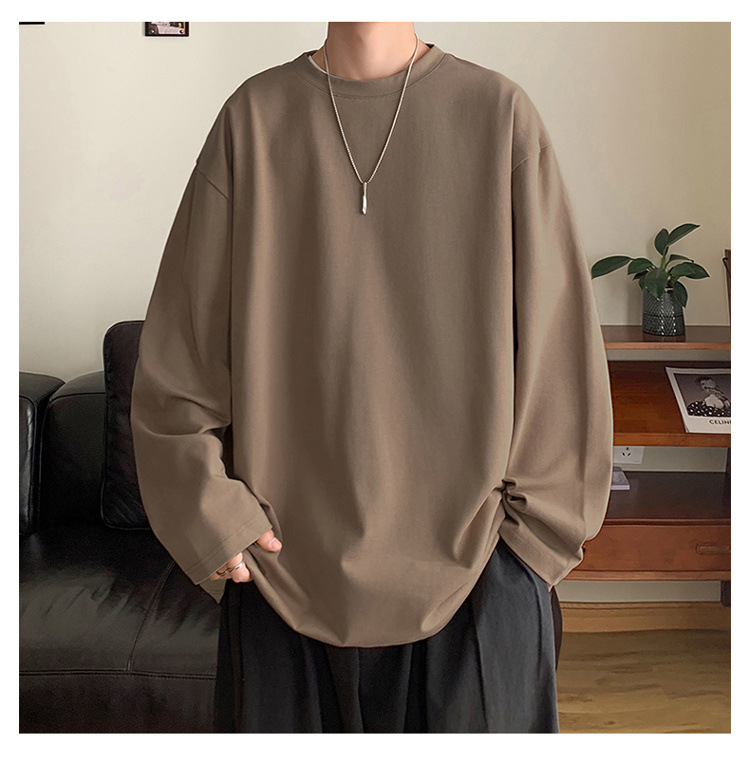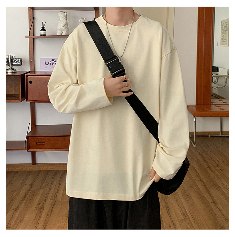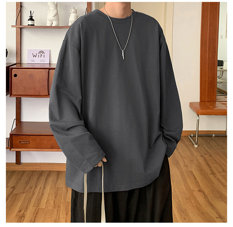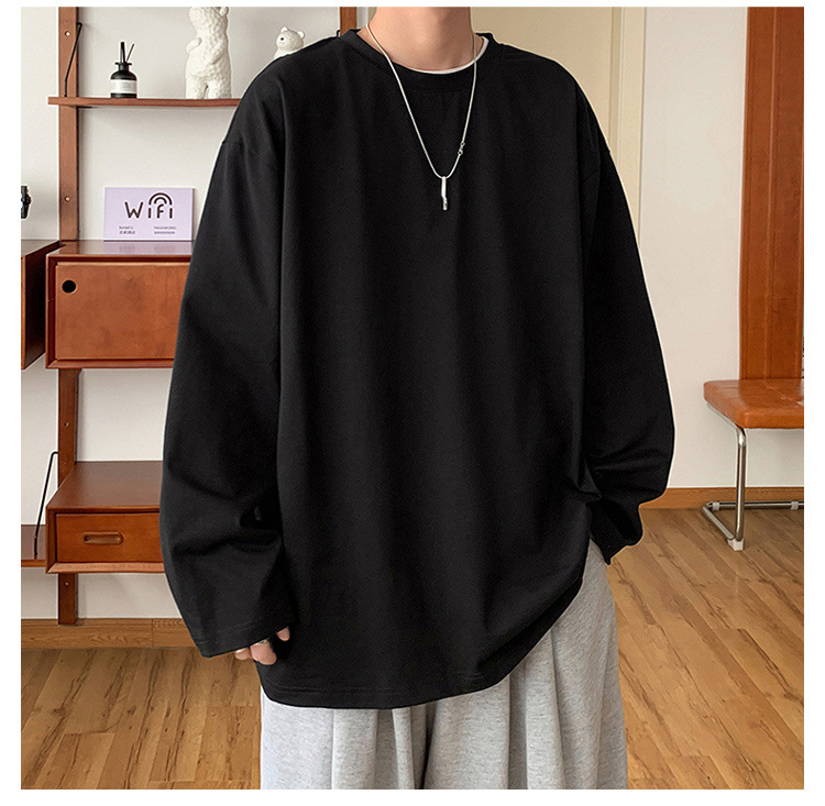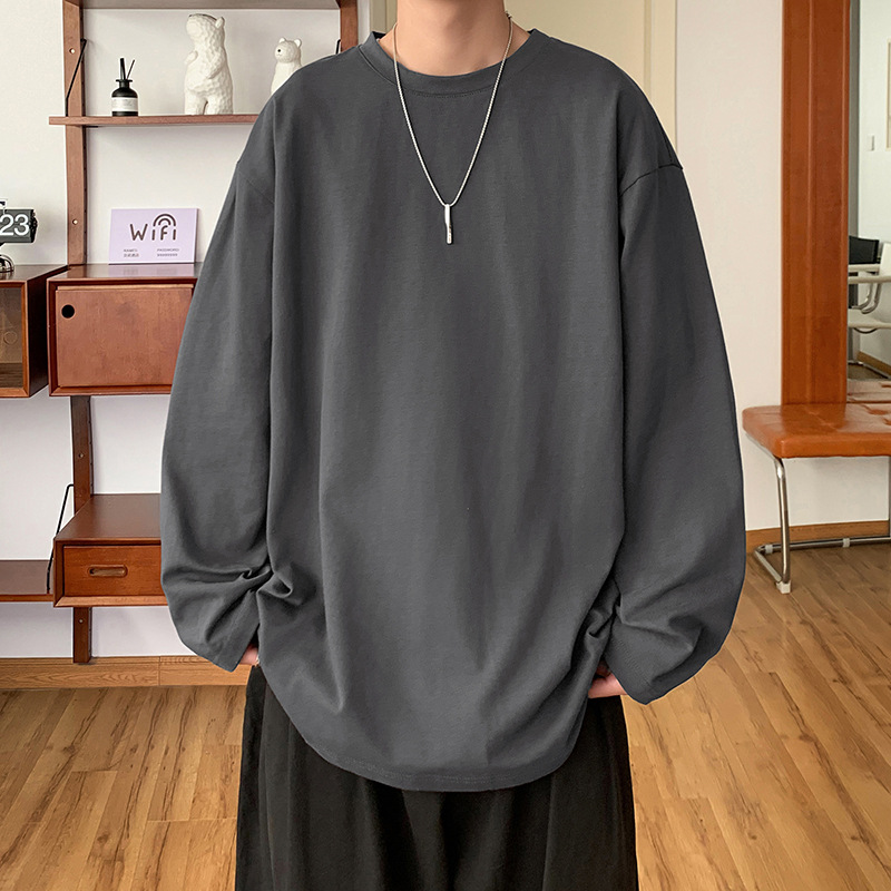 이른 봄 새로운 200g 티셔츠 남성베이스 셔츠 남자 스웨터 남자 일본 긴 소매 트렌디 브랜드 단색 티셔츠
