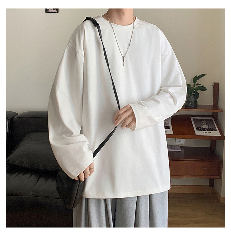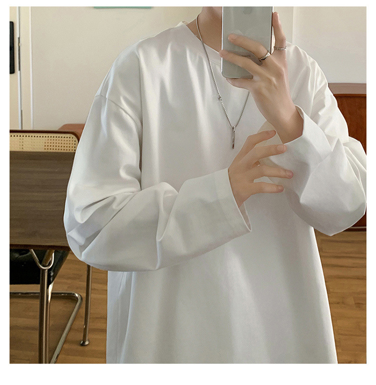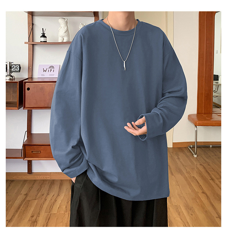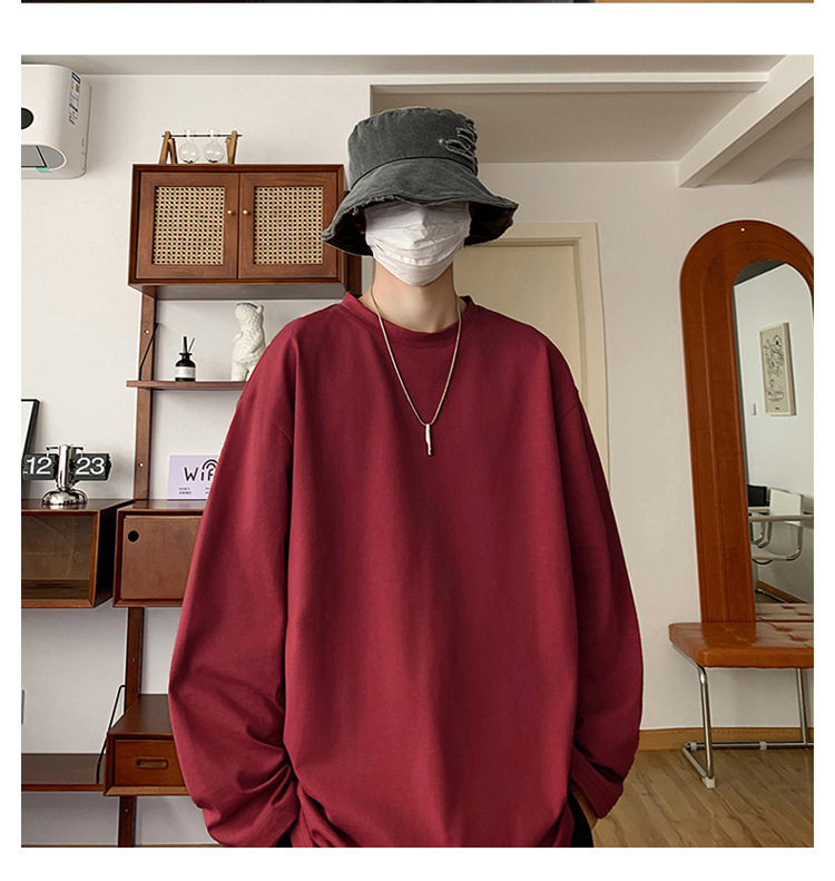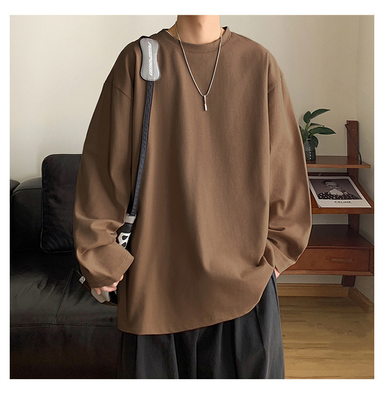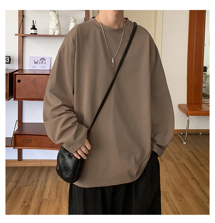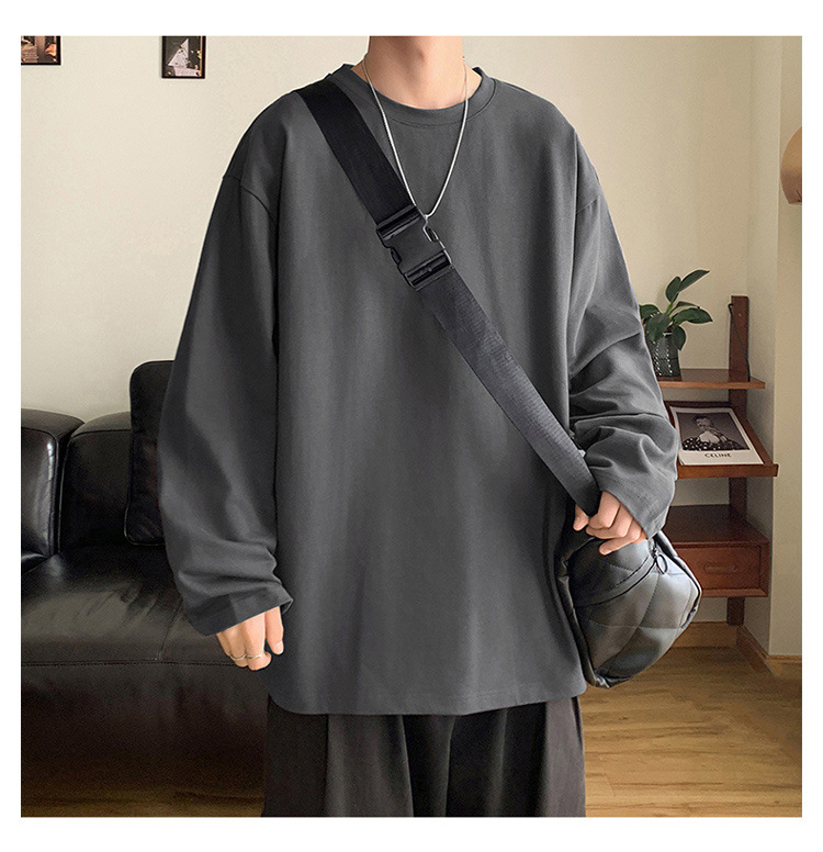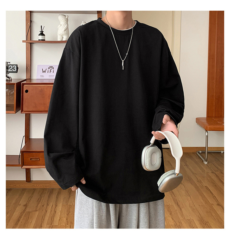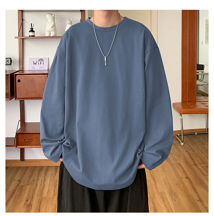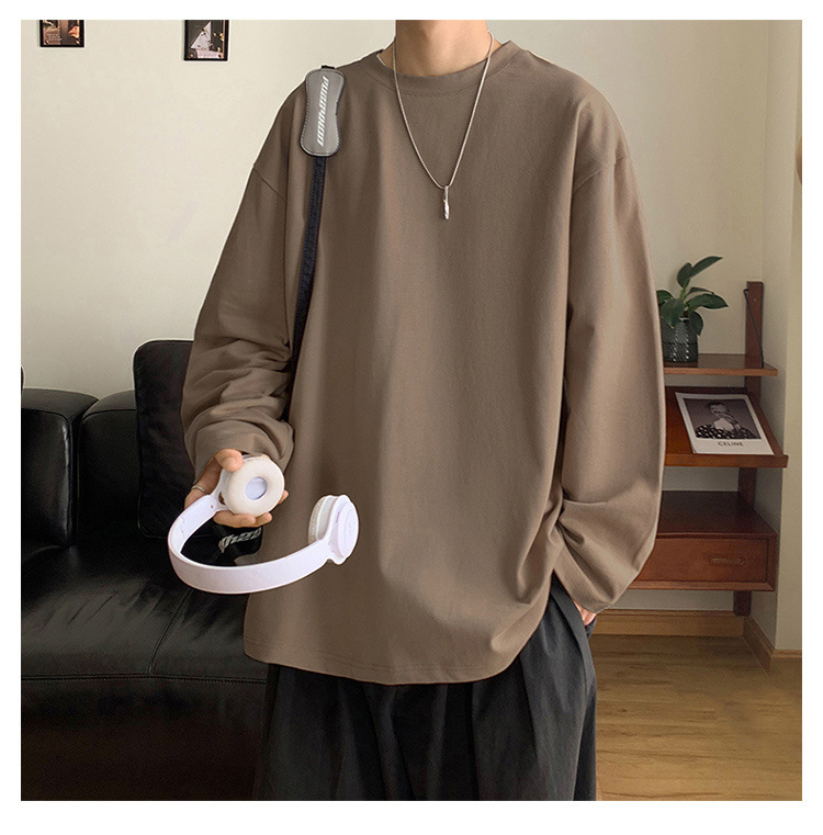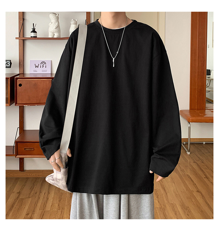 이른 봄 새로운 200g 티셔츠 남성베이스 셔츠 남자 스웨터 남자 일본 긴 소매 트렌디 브랜드 단색 티셔츠