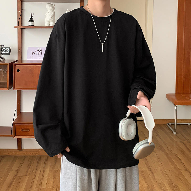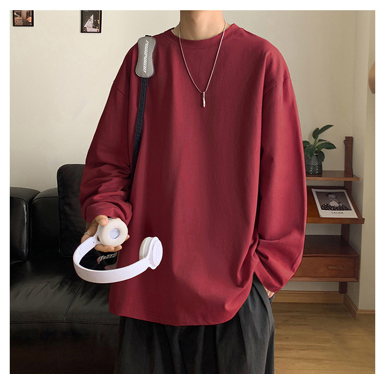 이른 봄 새로운 200g 티셔츠 남성베이스 셔츠 남자 스웨터 남자 일본 긴 소매 트렌디 브랜드 단색 티셔츠스토어 가기