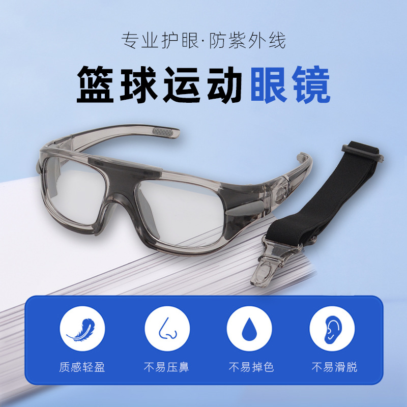 야외 스포츠 방폭 농구 안경, 축구 고글, 보호용 안경테, 스포츠형, 교체 가능한 안경다리, 근시용 렌즈 장착 가능