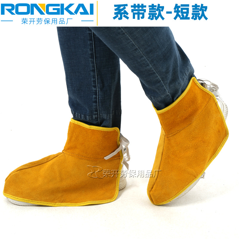 끈으로 두껍게 된 소 가죽 전기 용접 발 커버 단열 방지 연소 용접기 후크 및 루프 소 가죽 발 커버스토어 가기