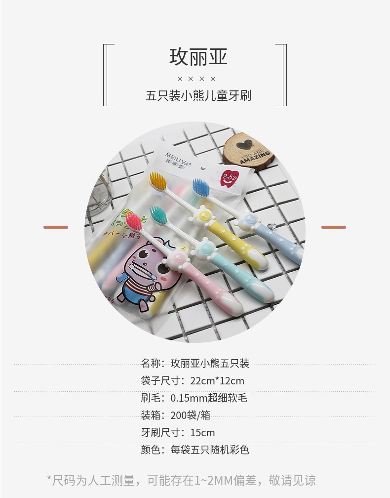 5 팩 만화 곰 어린이 칫솔 부드러운 머리 도매 아기 칫솔 소스 공장 3-12 세 하이 퀄리티