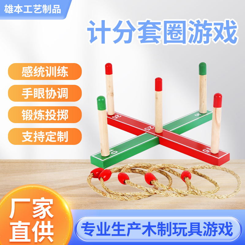 유칼립투스 우드 크로스 링 부모-어린이 반지 던지기 스포츠 대외 무역 교육 유치원 감정 훈련 링 게임스토어 가기