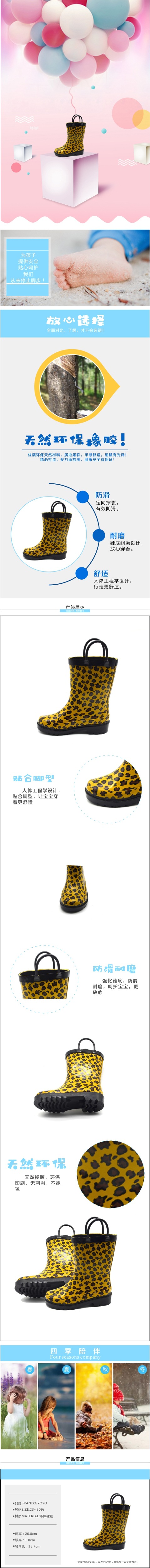 어린이 동물 프린트 종아리 중간 장화, 노란색 표범 프린트 손잡이 워터 슈즈, 소년 소녀용 방수 미끄럼 방지 장화 도매스토어 가기