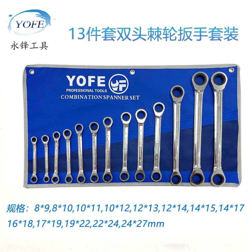 Yongfeng 더블 엔드 래칫 렌치 빠른 자동 이중 목적 단방향 링 렌치 세트 자동 수리 하드웨어 도구