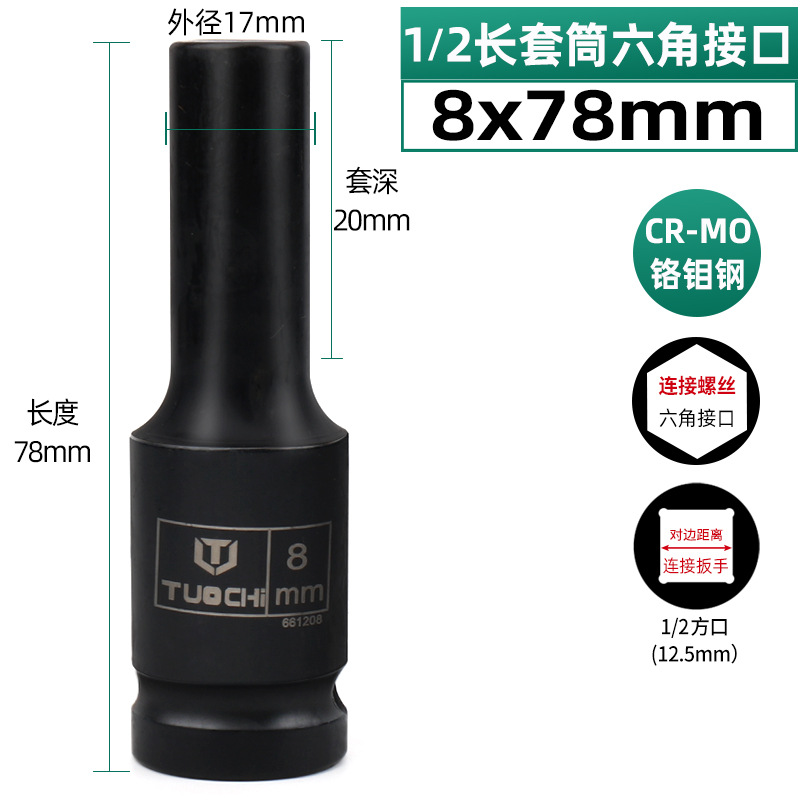 1/2 작은 공기총 슬리브 헤드 공압 두꺼운 구리 타이어 슬리브 대형 비행 헤드 리튬 전기 육각형 길쭉한 블랙 렌치