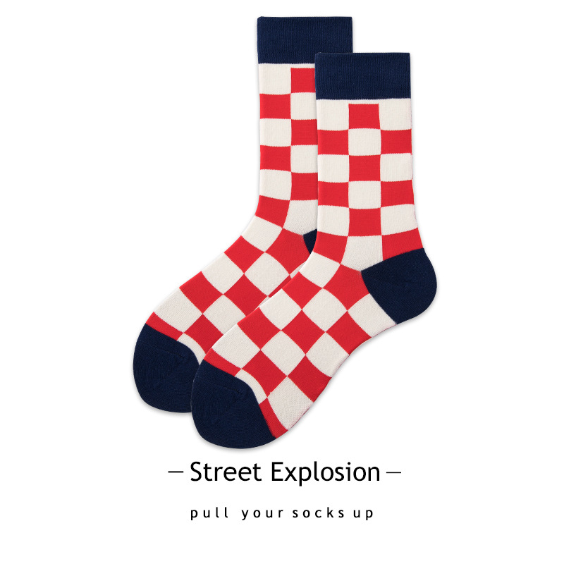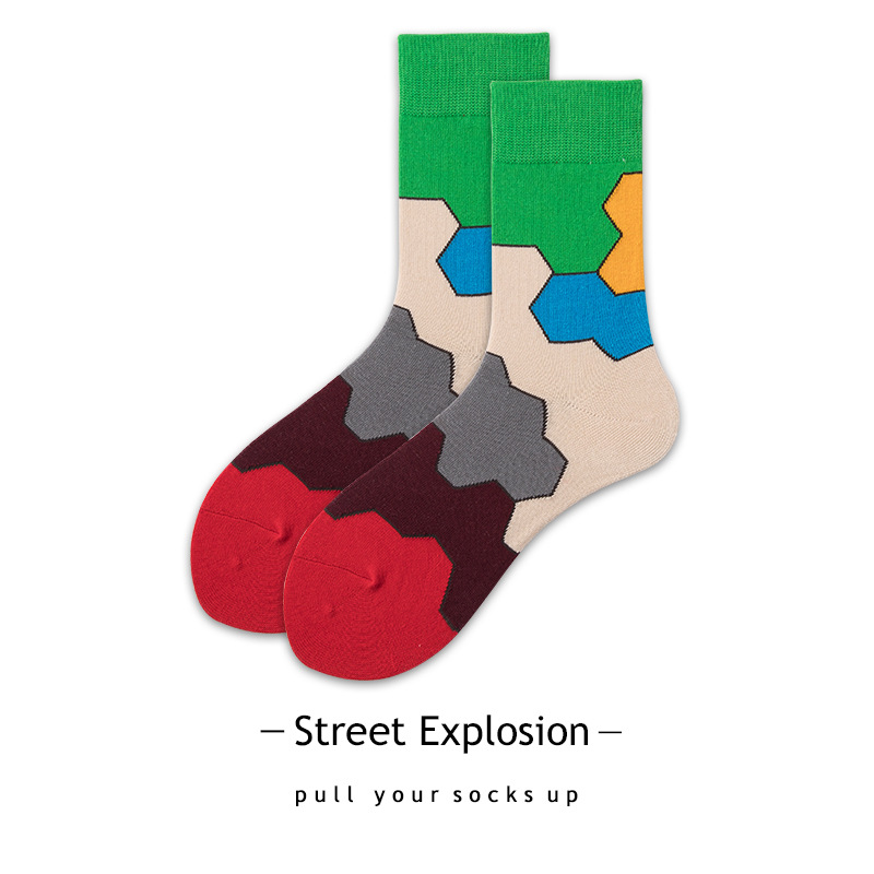 • 品名:中国制多色拼接图案情侣中筒袜