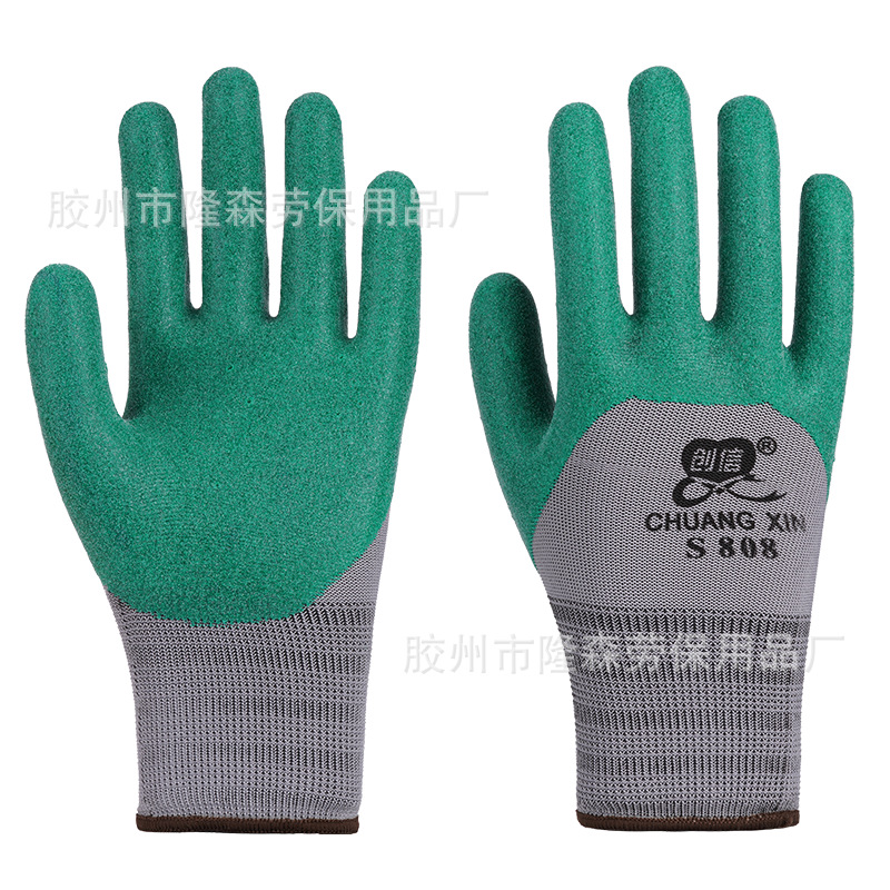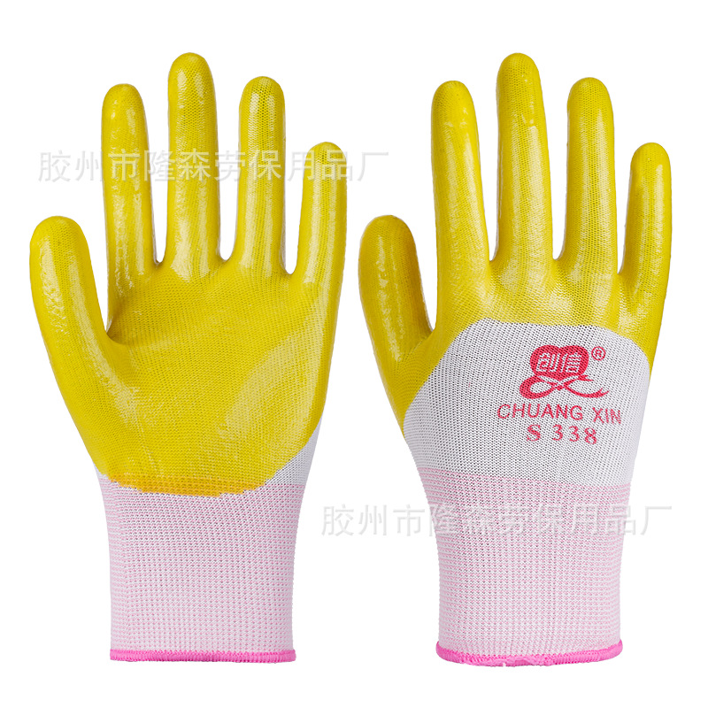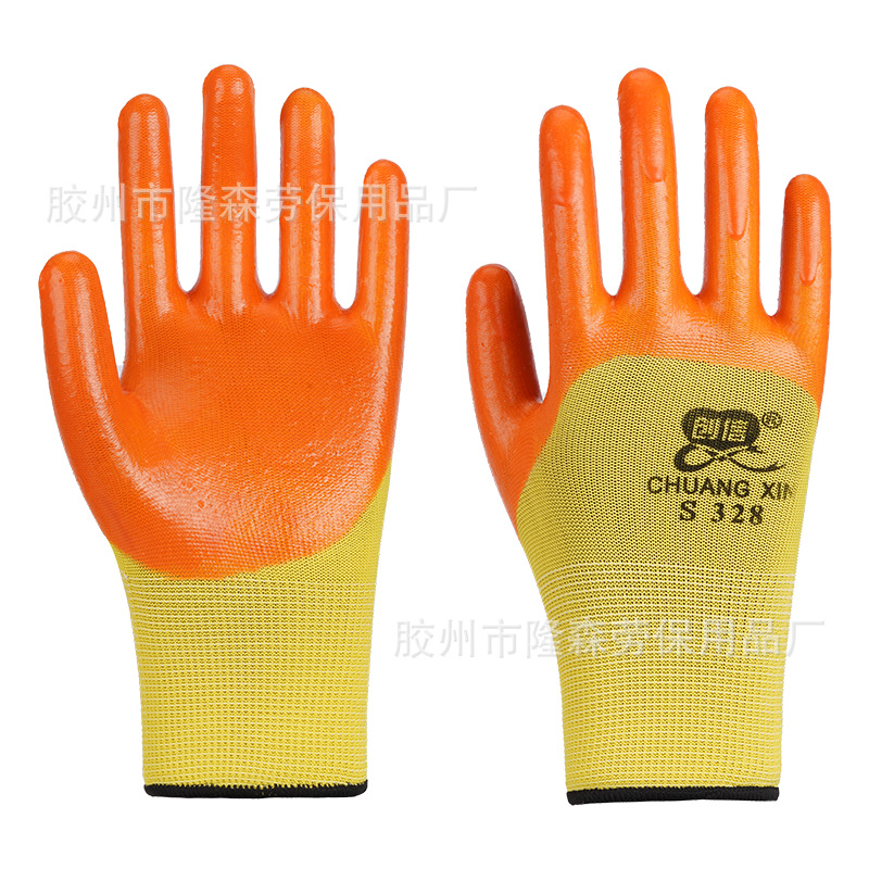 Chuangxin S318PVC 반 매달린 쇠고기 텐돈 담근 노동 보호 장갑 착용 방지 오일 저항 고무 작동 통기성 두꺼운 고무스토어 가기