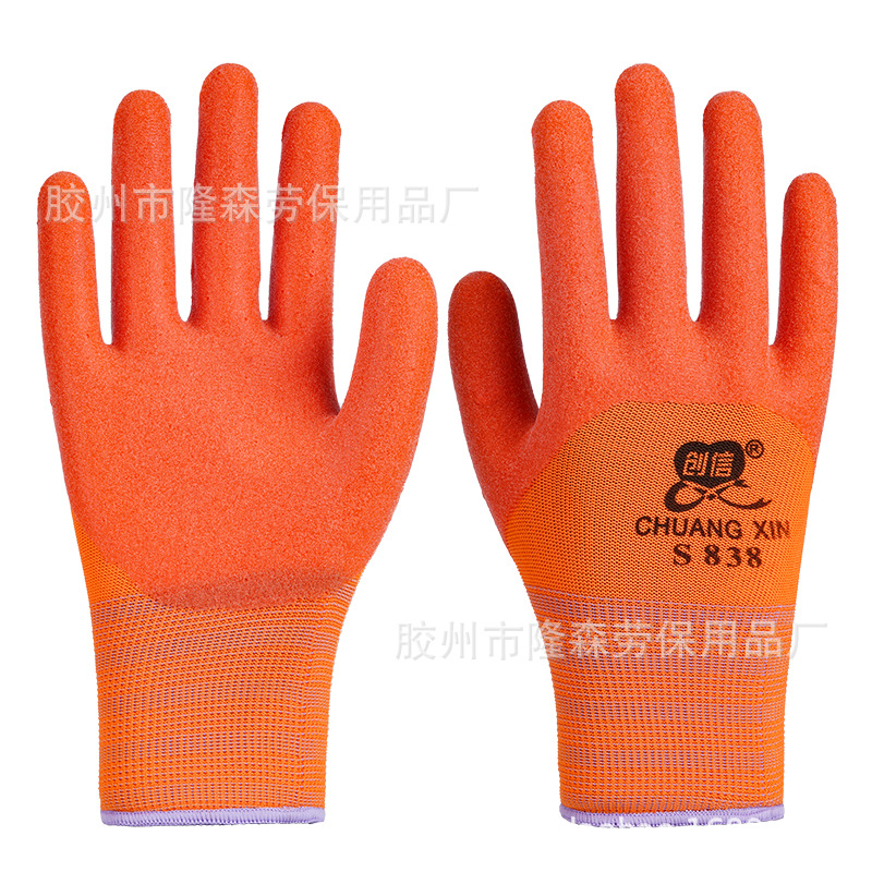 Chuangxin S318PVC 반 매달린 쇠고기 텐돈 담근 노동 보호 장갑 착용 방지 오일 저항 고무 작동 통기성 두꺼운 고무