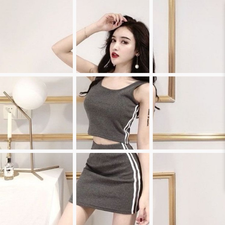 여름 사이드 스트라이프 슬림 핏 힙합 스커트 캐주얼 세트 S1189 조끼 투피스 세트