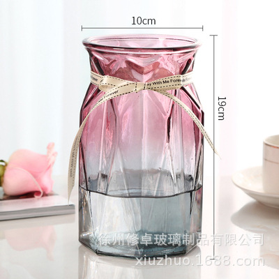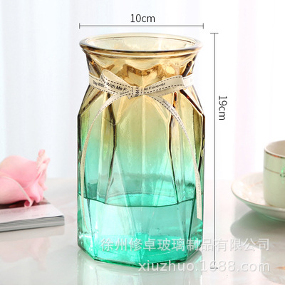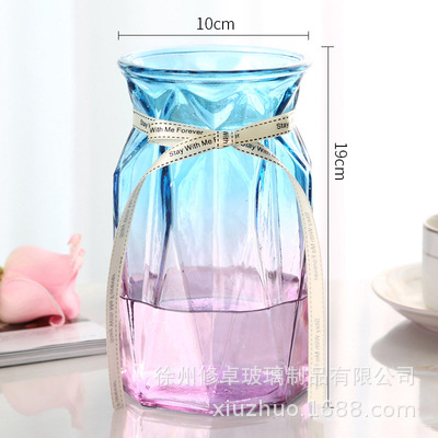 유럽 스타일 크리 에이 티브 다채로운 투명 유리 꽃병 가정용 수경 백합 꽃병 거실 데스크탑 장식 꽃병스토어 가기