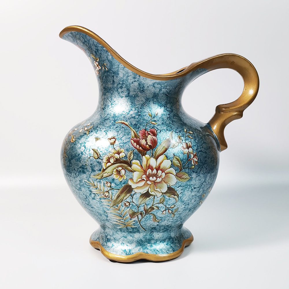 유럽 스타일 라이트 럭셔리 공예 꽃병 세라믹 페인트 홈 장식 대형 데스크탑 꽃병 거실 장식품