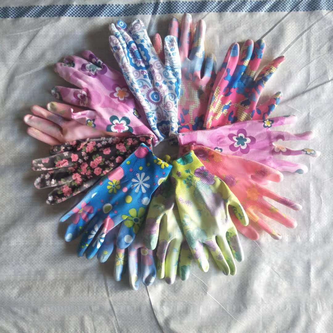 공장 직판 여성용 PU 고무장갑 손가락과 손바닥에 코팅된 작업용 장갑 원예 및 경공업 보호용 전손 미끄럼 방지 장갑