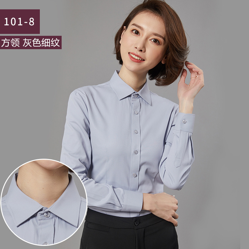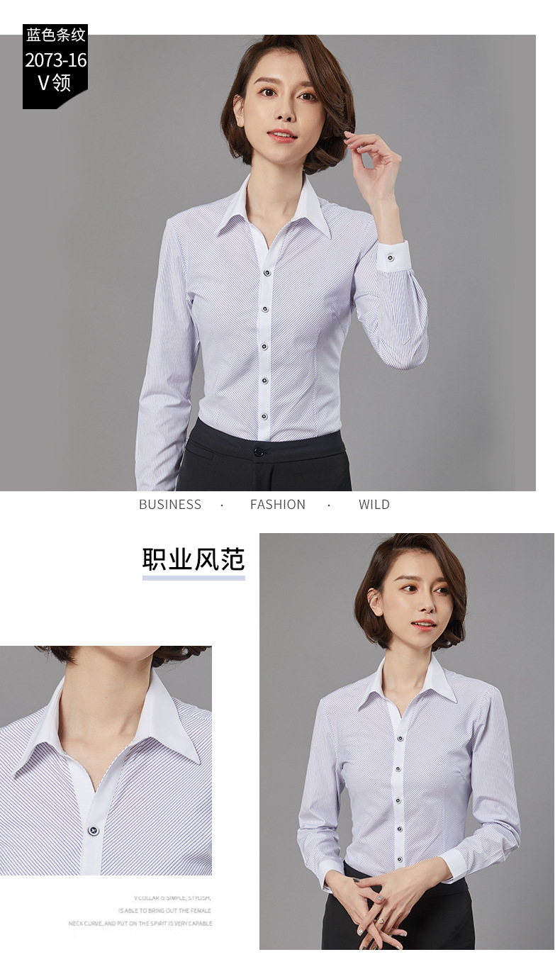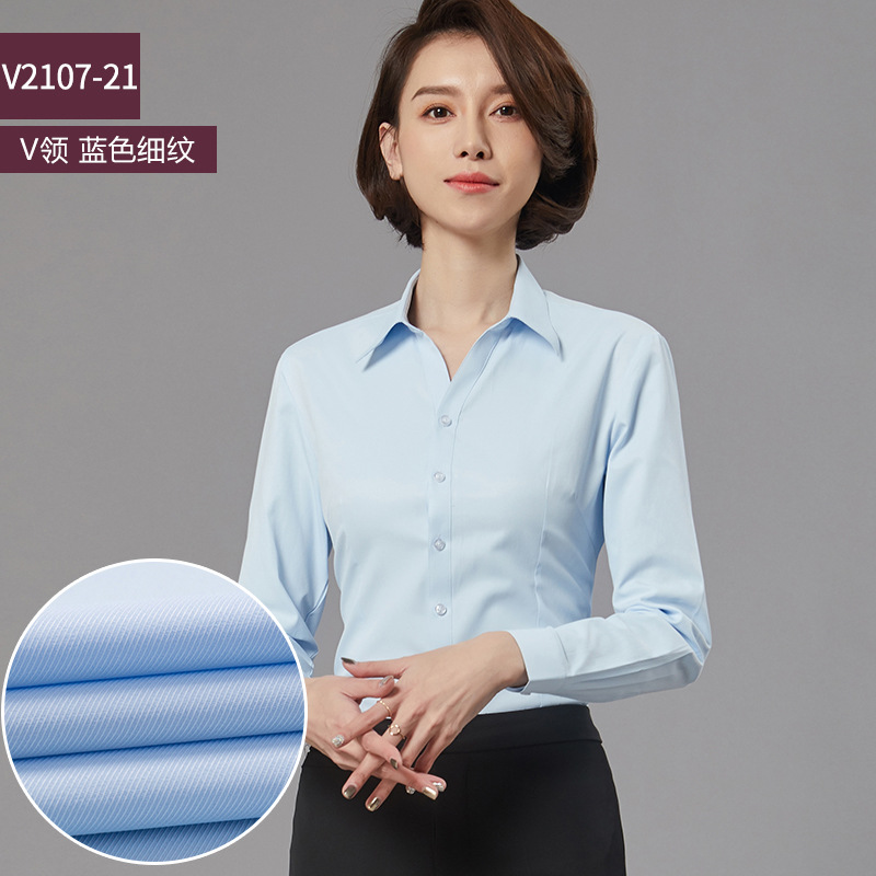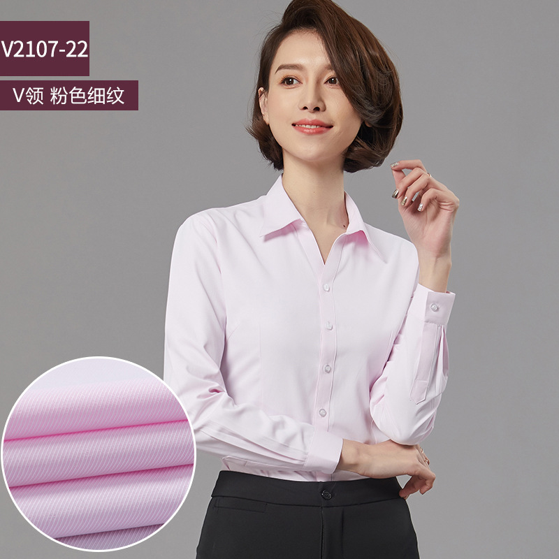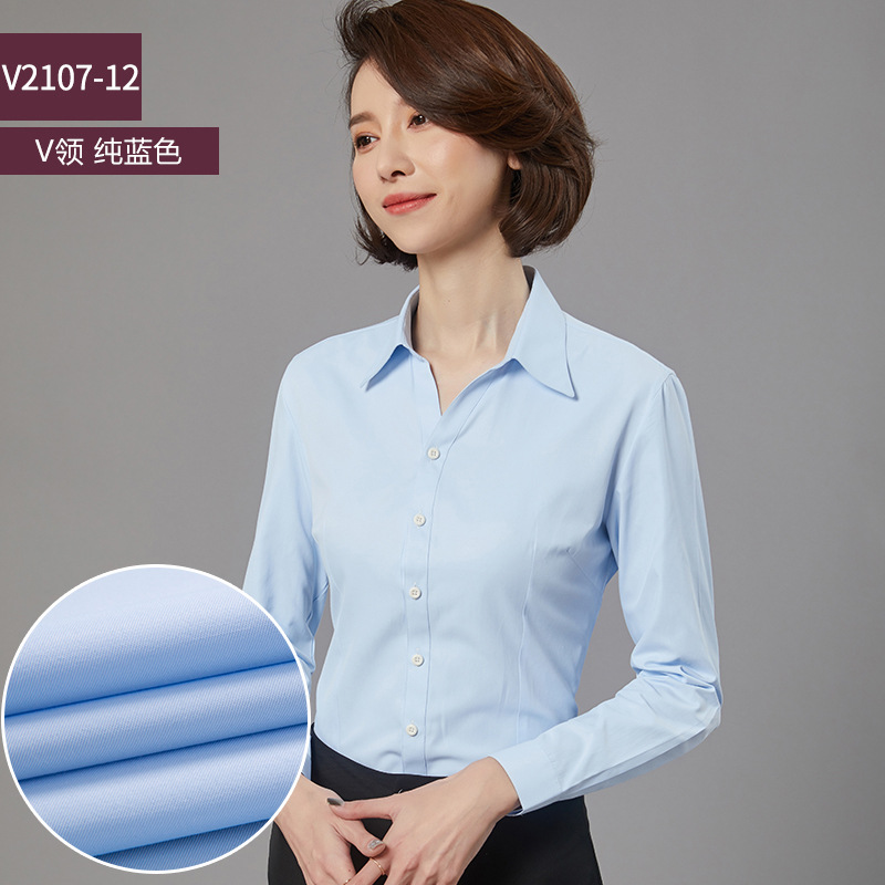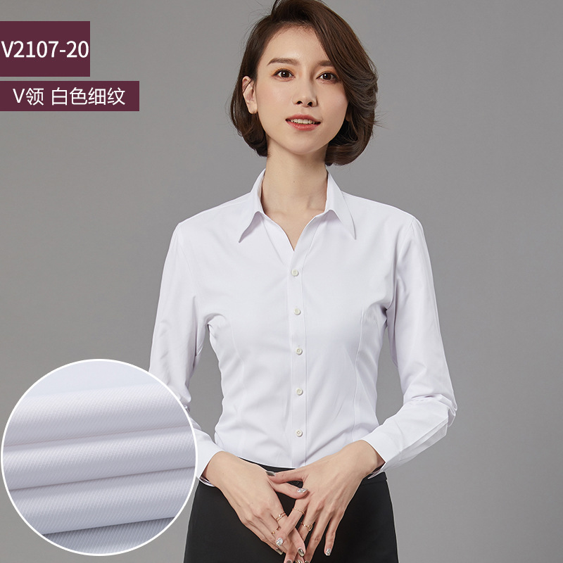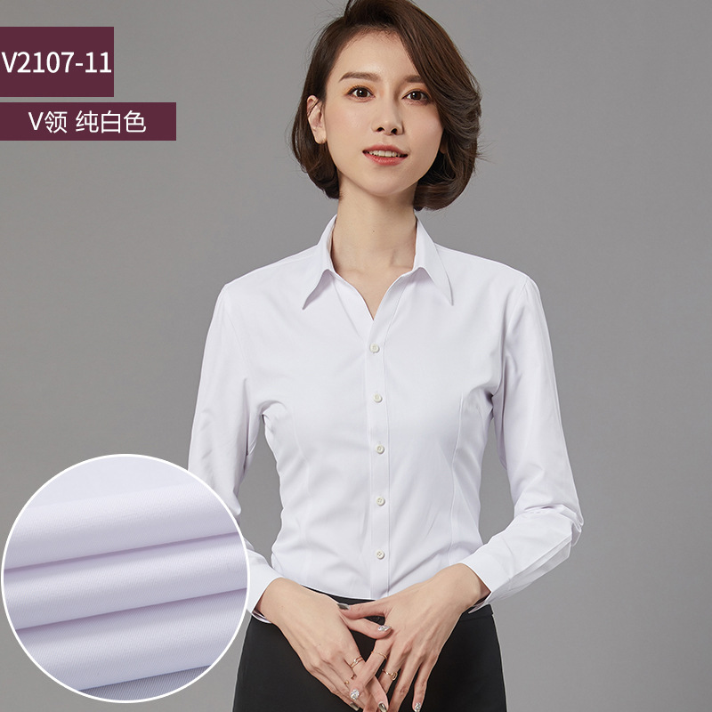 새로운 드레스 칼라 프로페셔널 블라우스 긴팔 비즈니스 슬림핏 슬리밍 인터뷰 브이넥 화이트 셔츠 통근 OL 베이스
